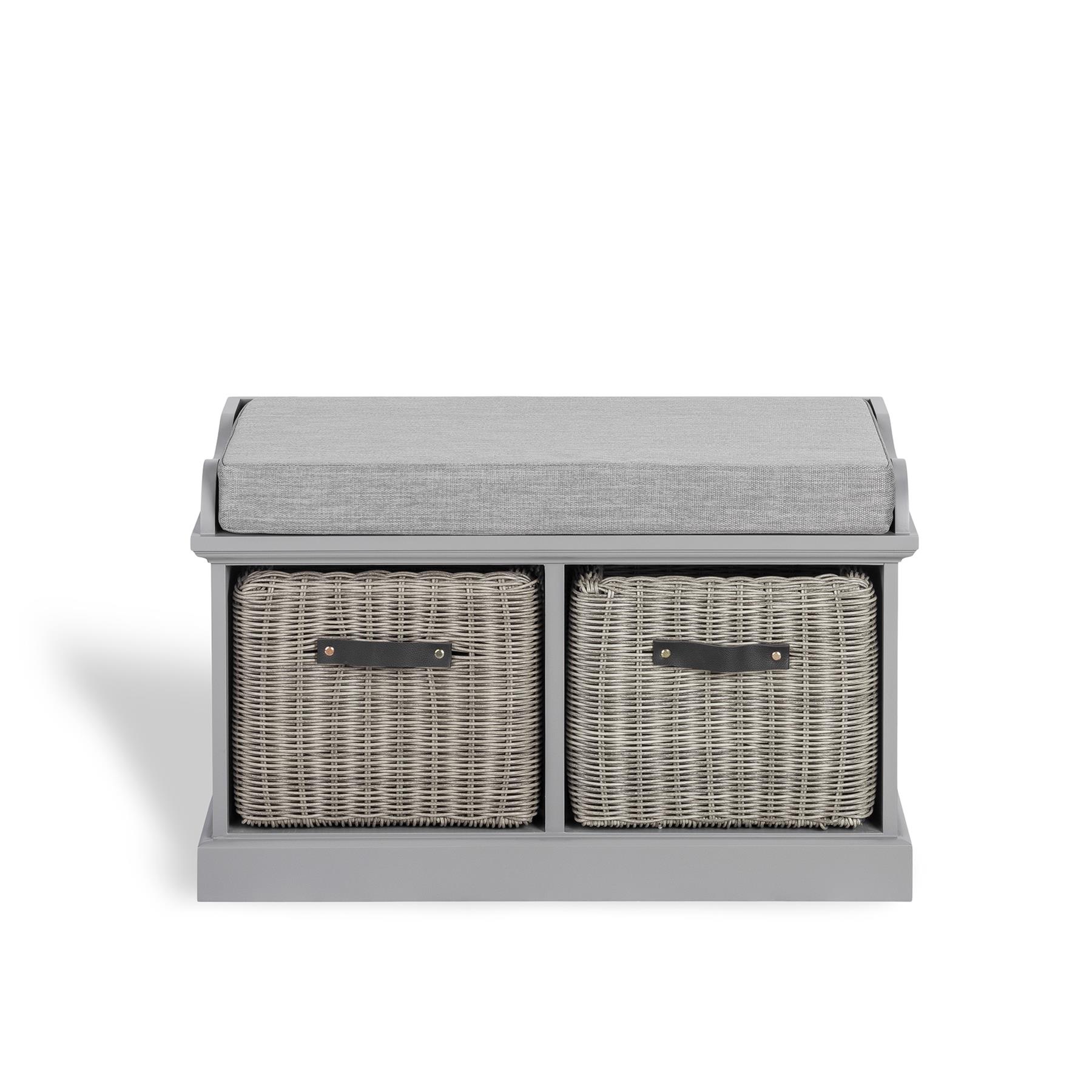 Tetbury Bench with 2 White Baskets. Hallway storage bench with cushion.4 colours