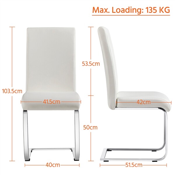 Latitude Run Dining Chairs Set of 2 Modern Teddy Fabric Upholstered Chairs with Curved Backrest and Black Metal Legs White 74.4cm H X 51.5cm W X 42cm D