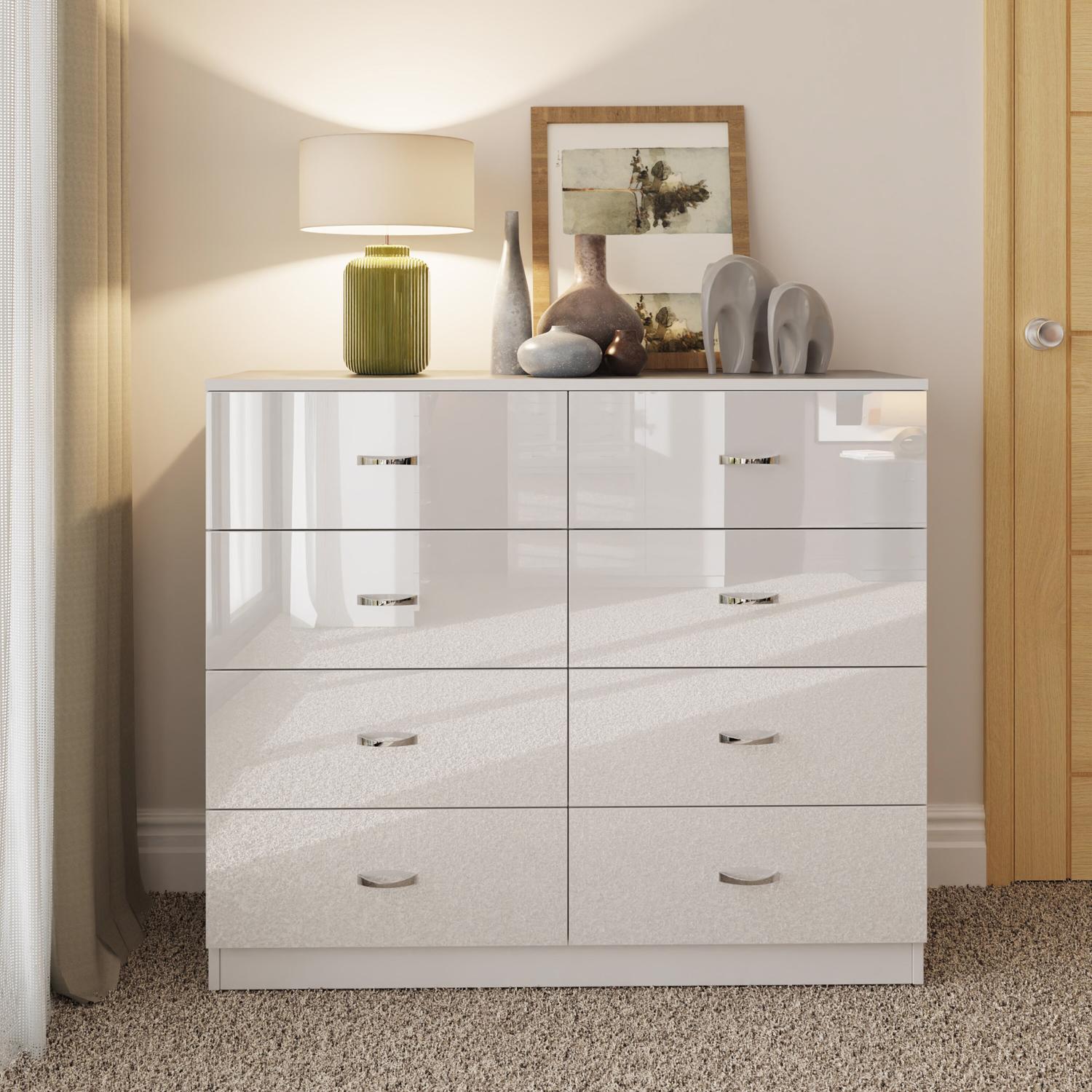 2 to 8 Drawer Chest of Drawers Modern Bedroom Furniture White Gloss