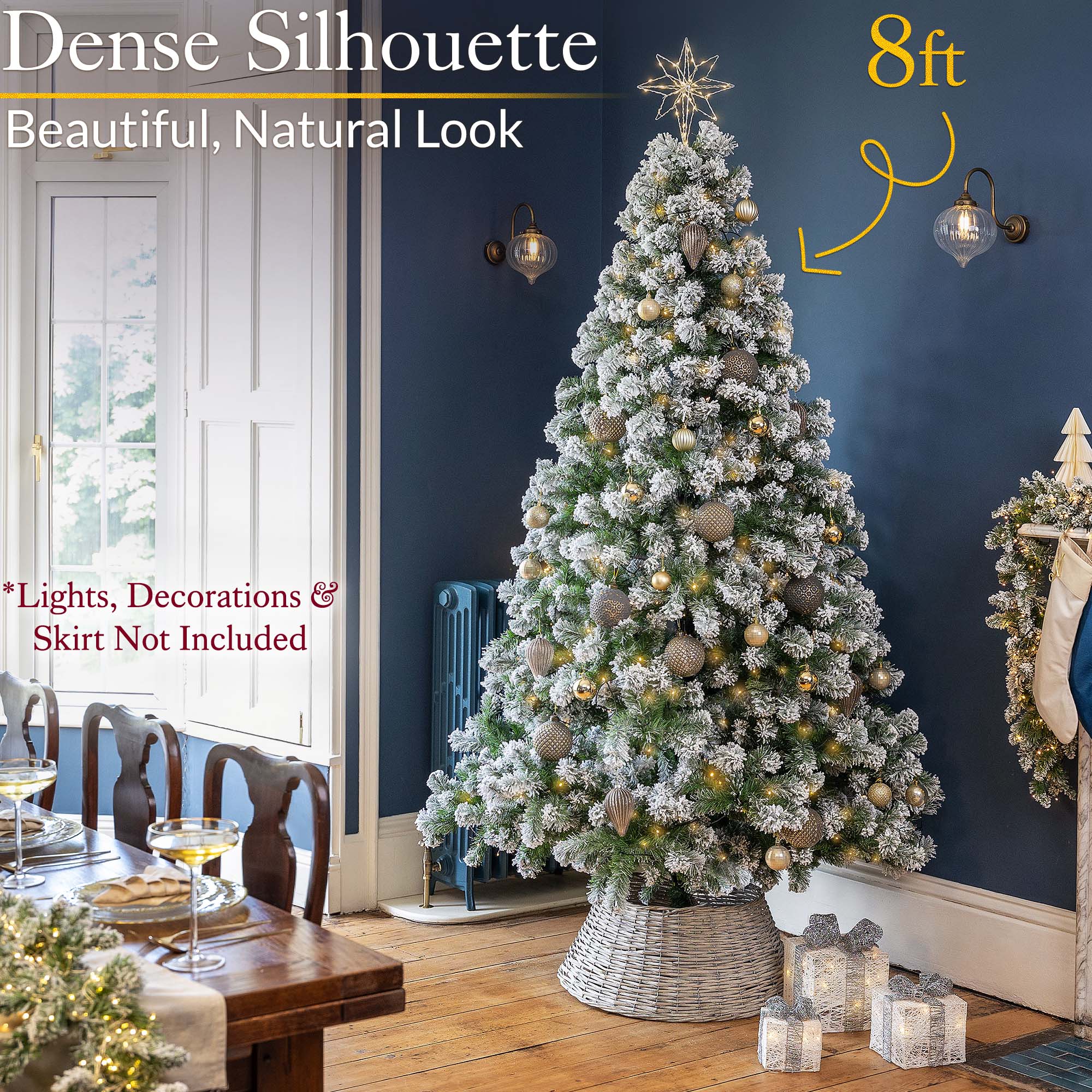 Christow Snow Flocked Christmas Tree Luxury Artificial Verbier Fir 6ft 7ft 8ft in Green Green 7ft