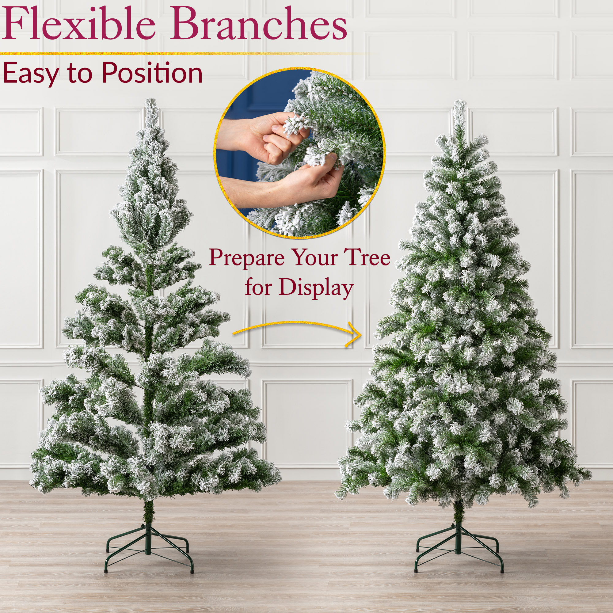 Christow Snow Flocked Christmas Tree Luxury Artificial Verbier Fir 6ft 7ft 8ft in Green Green 6ft