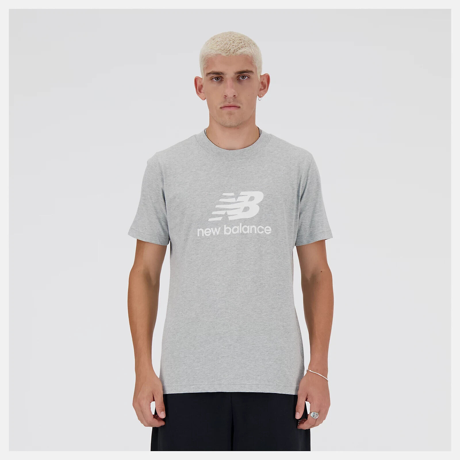 New Balance Sport Essentials T Shirt Mens White 100% Cotton Relaxed Fit Pullover