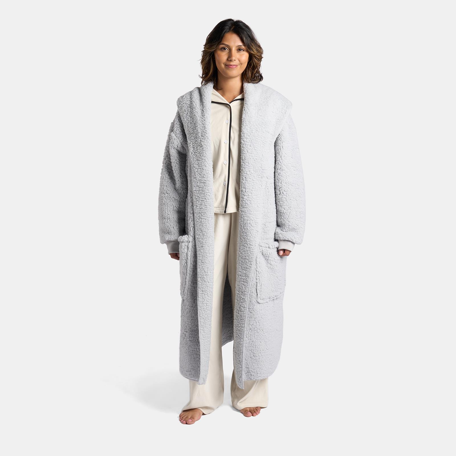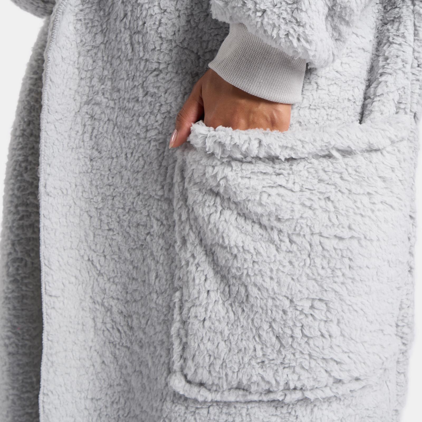 OHS Waterfall Teddy Fleece Cardigan Warm Open Front Wrap Outwear Pockets in Charcoal Size: Large/XL Charcoal L/XL