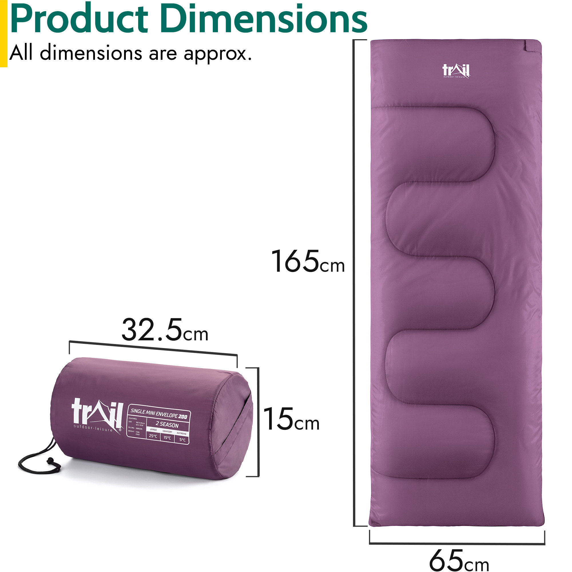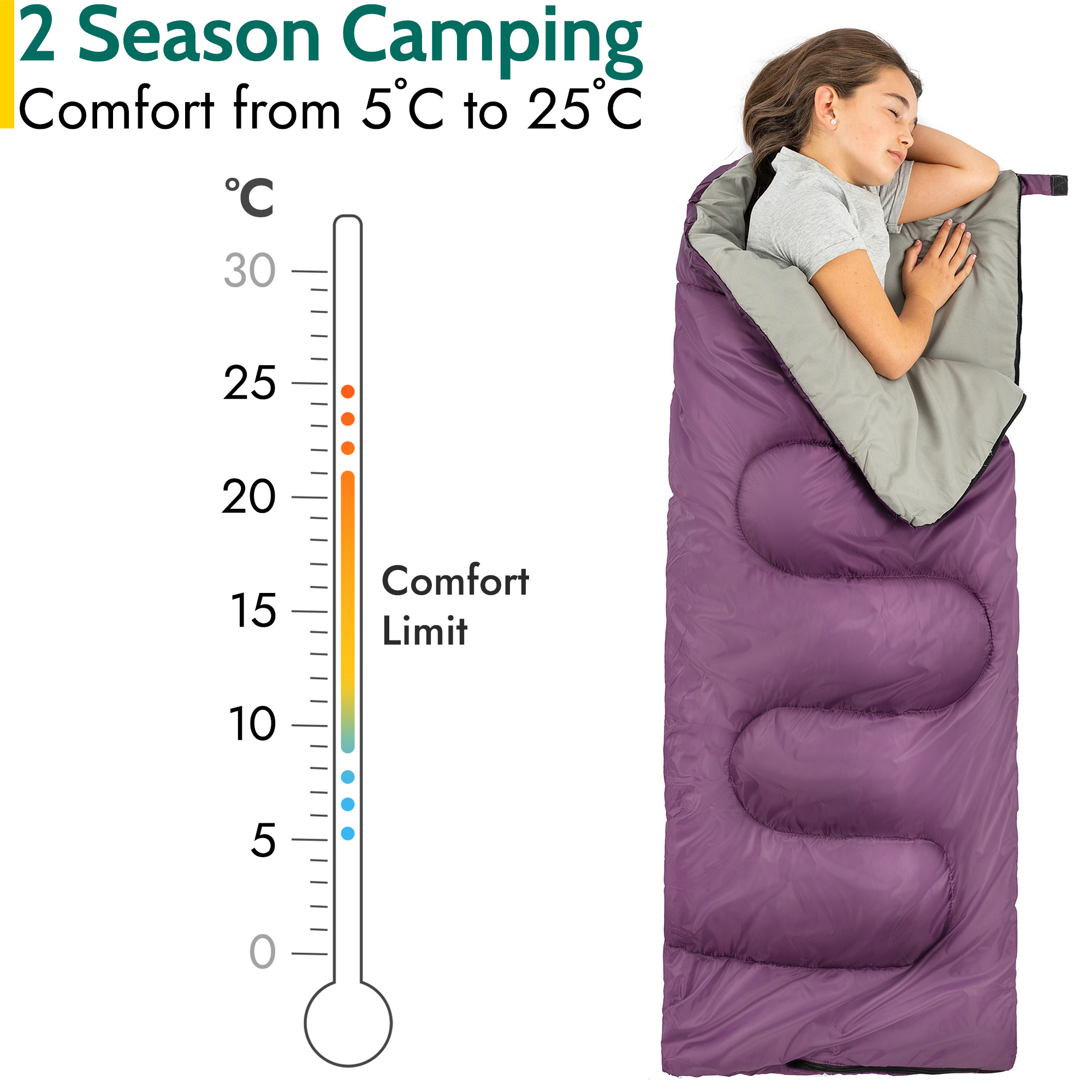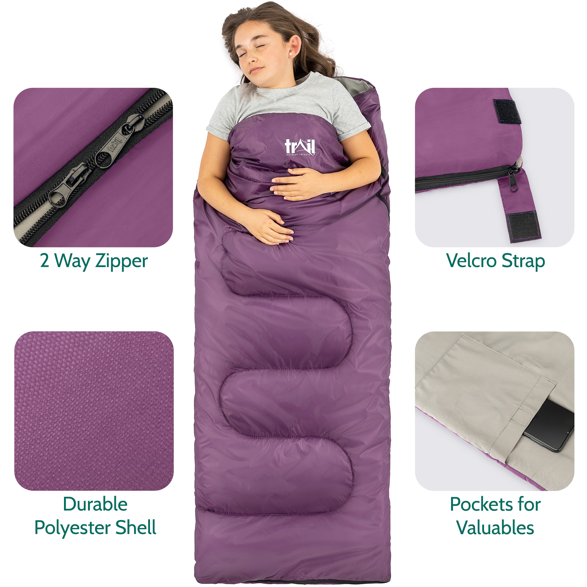 Trail Outdoor Leisure Sleeping Bag Mummy Hooded 3 Season Soft Warm 2 Way Zip in Purple Purple