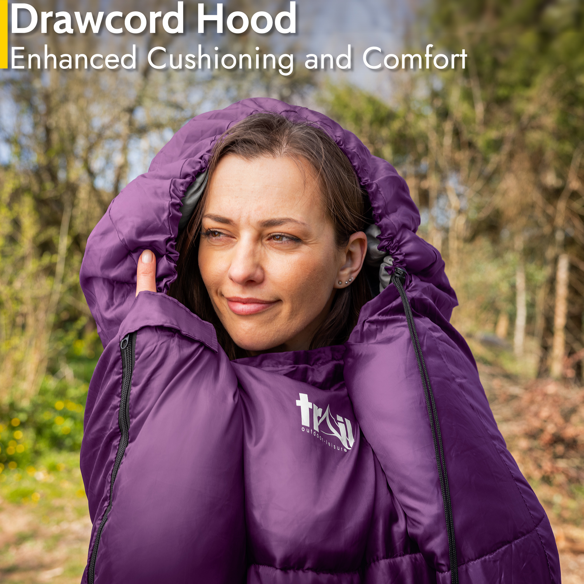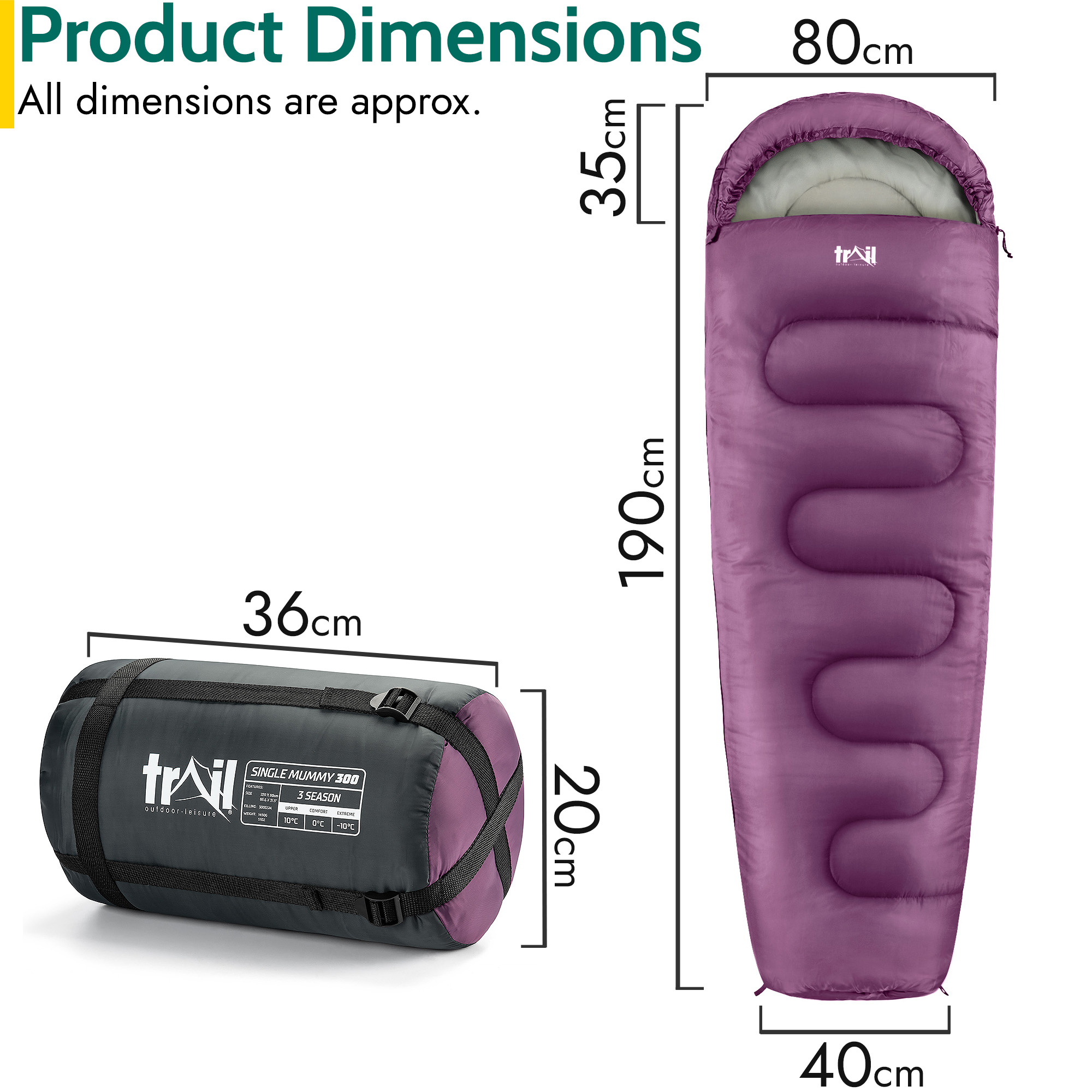 Trail Kids Sleeping Bag Mummy Hooded 3 Season Soft Warm 2 Way Zip Boys Girls