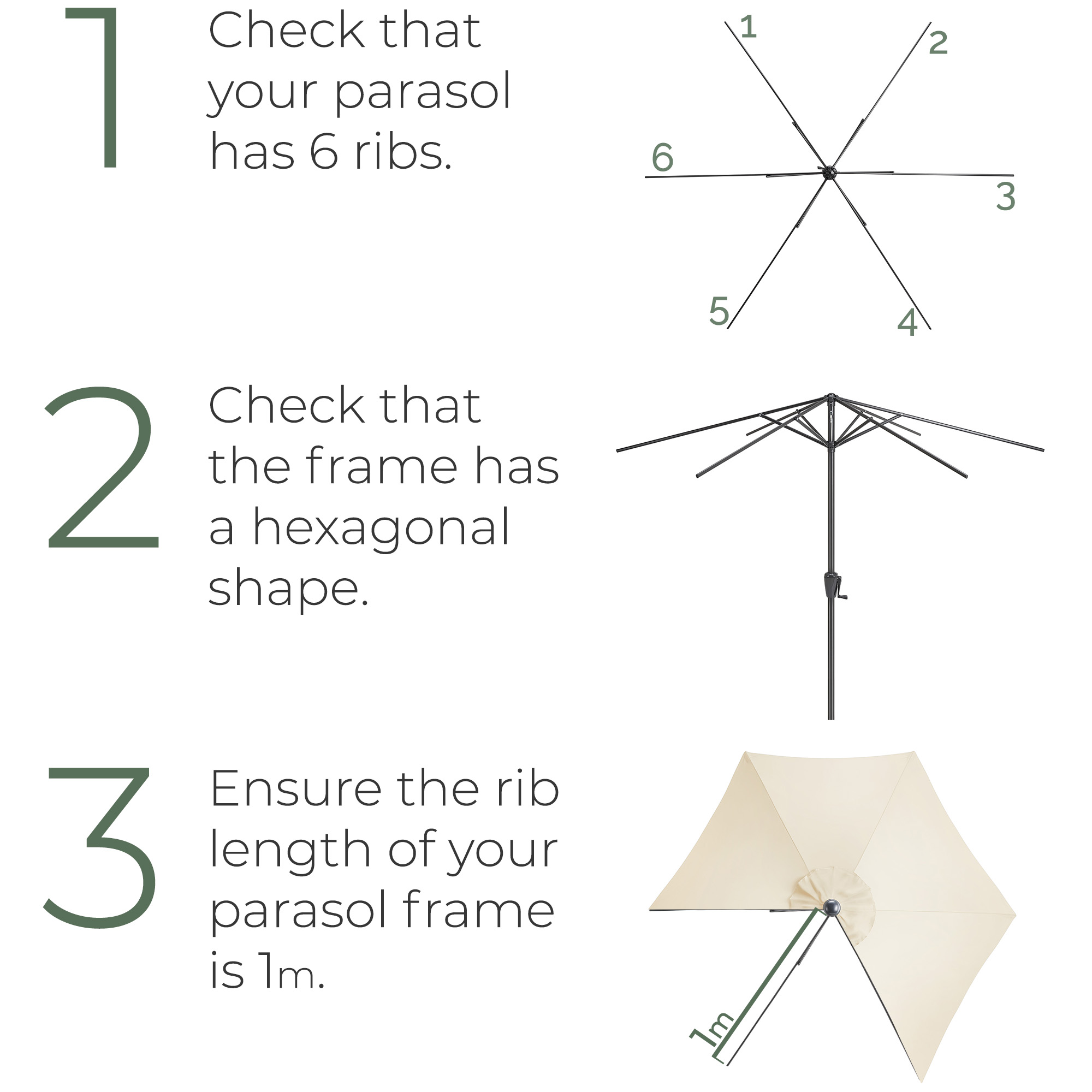 Replacement Parasol Canopy Hexagonal 6 Arms UV Protection Christow