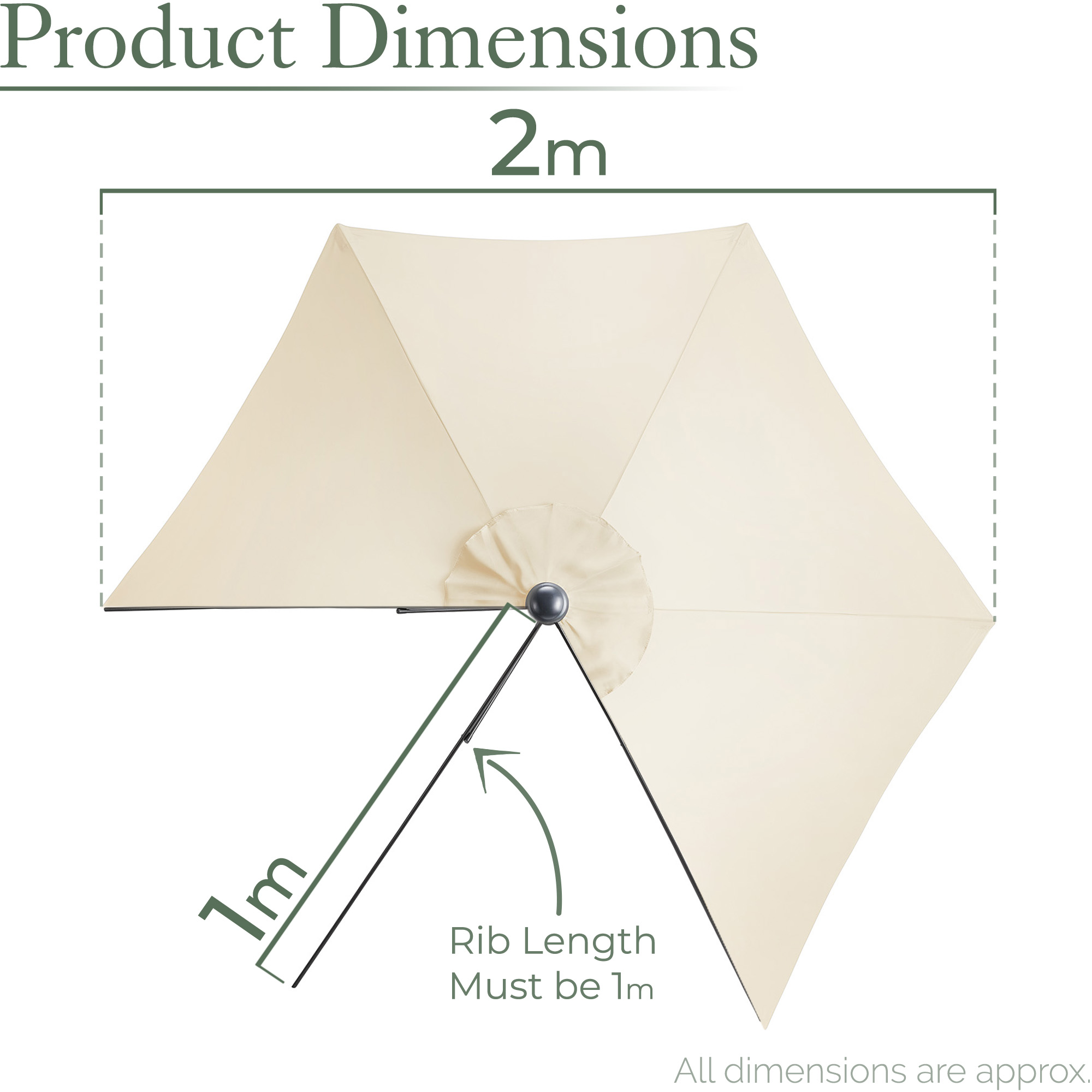 Christow 2.7m Replacement Parasol Canopy Hexagonal 6 Ribs UV30+ Taupe Garden