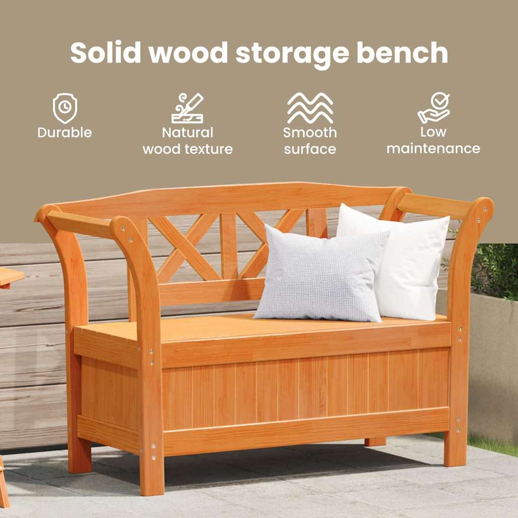 2-Seater Garden Storage Bench for Patio Wood Porch Decor Outdoor Seating