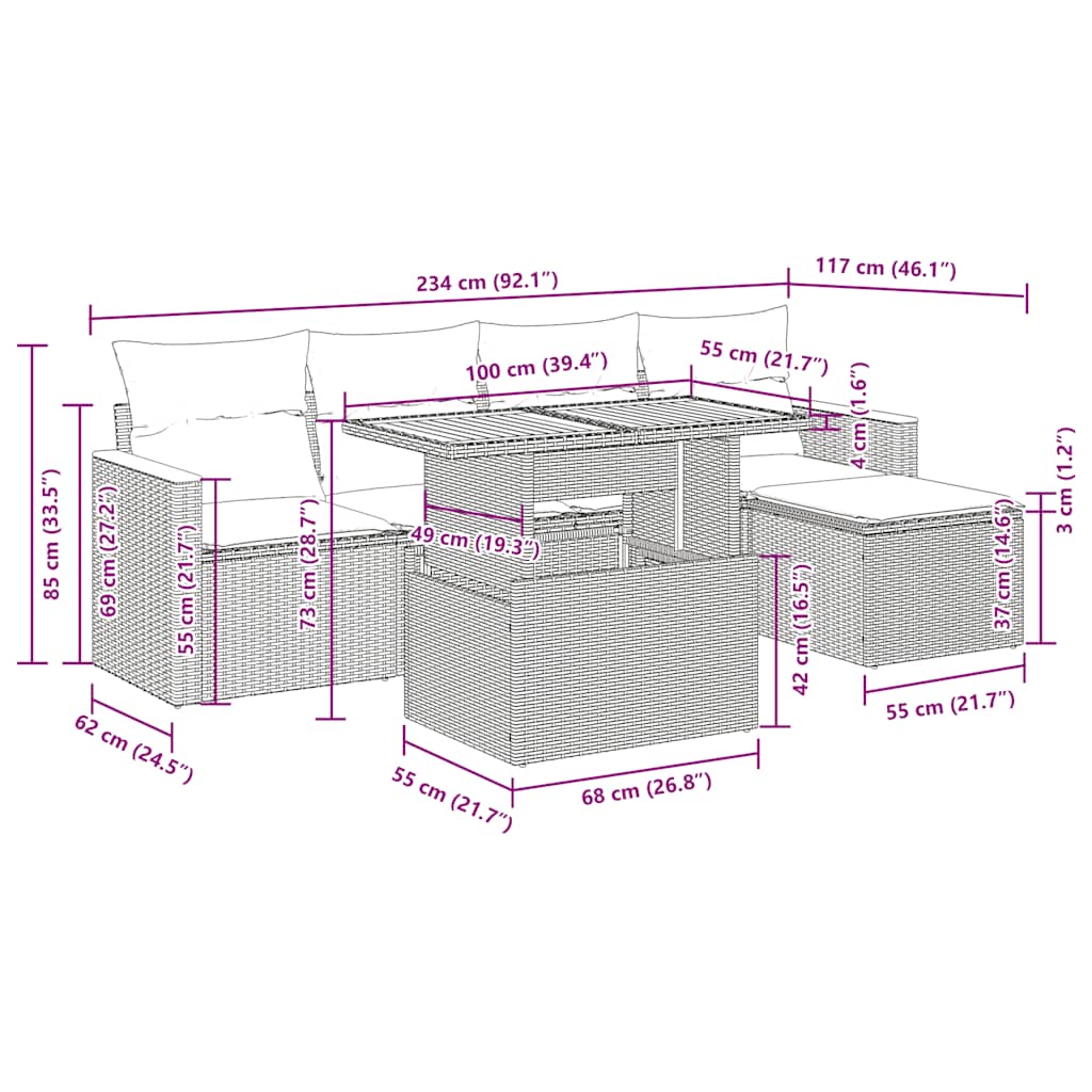 Garden Sofa Set with Cushion Manual 6 pcs Beige Poly Rattan vidaXL