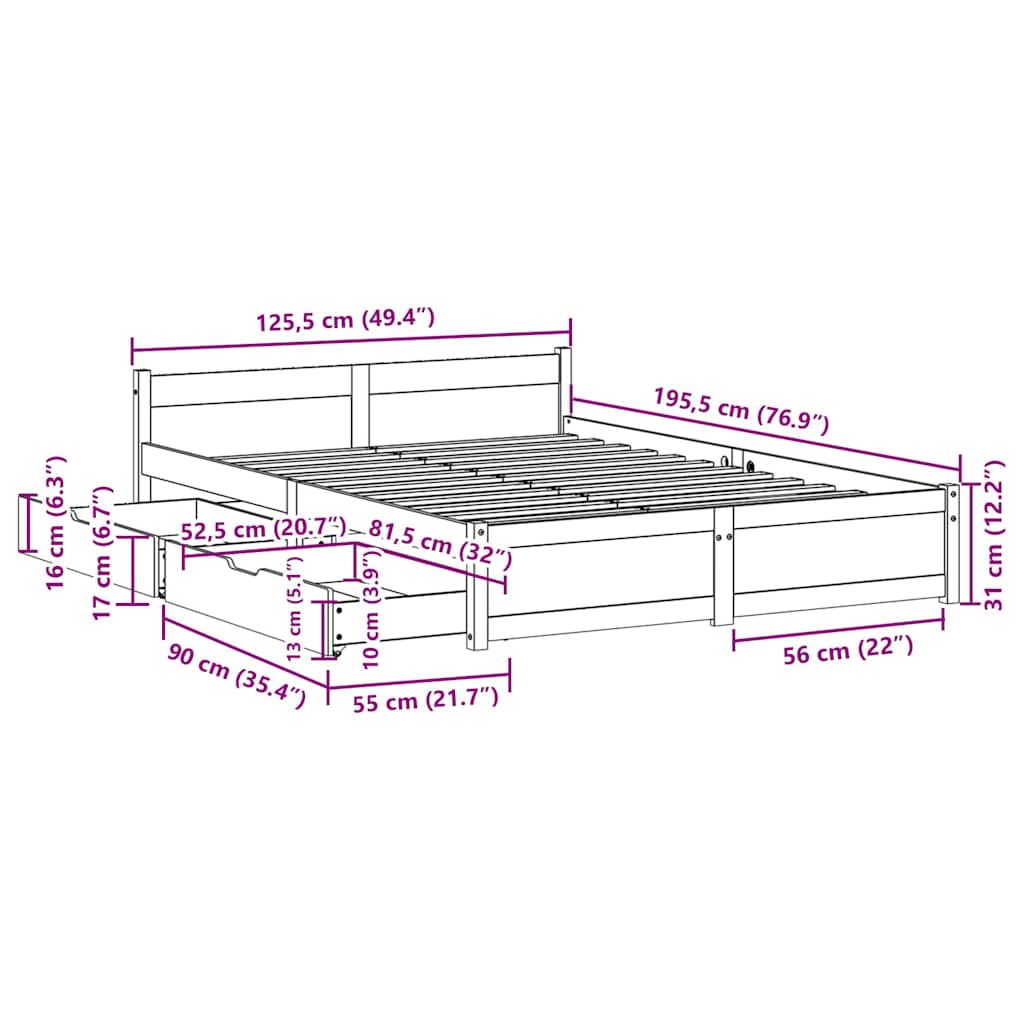 Berkfield Home Bed Frame without Mattress with Drawers Wax Brown 120x200 cm Solid Wood Pine Size: Small Double Brown Small Double