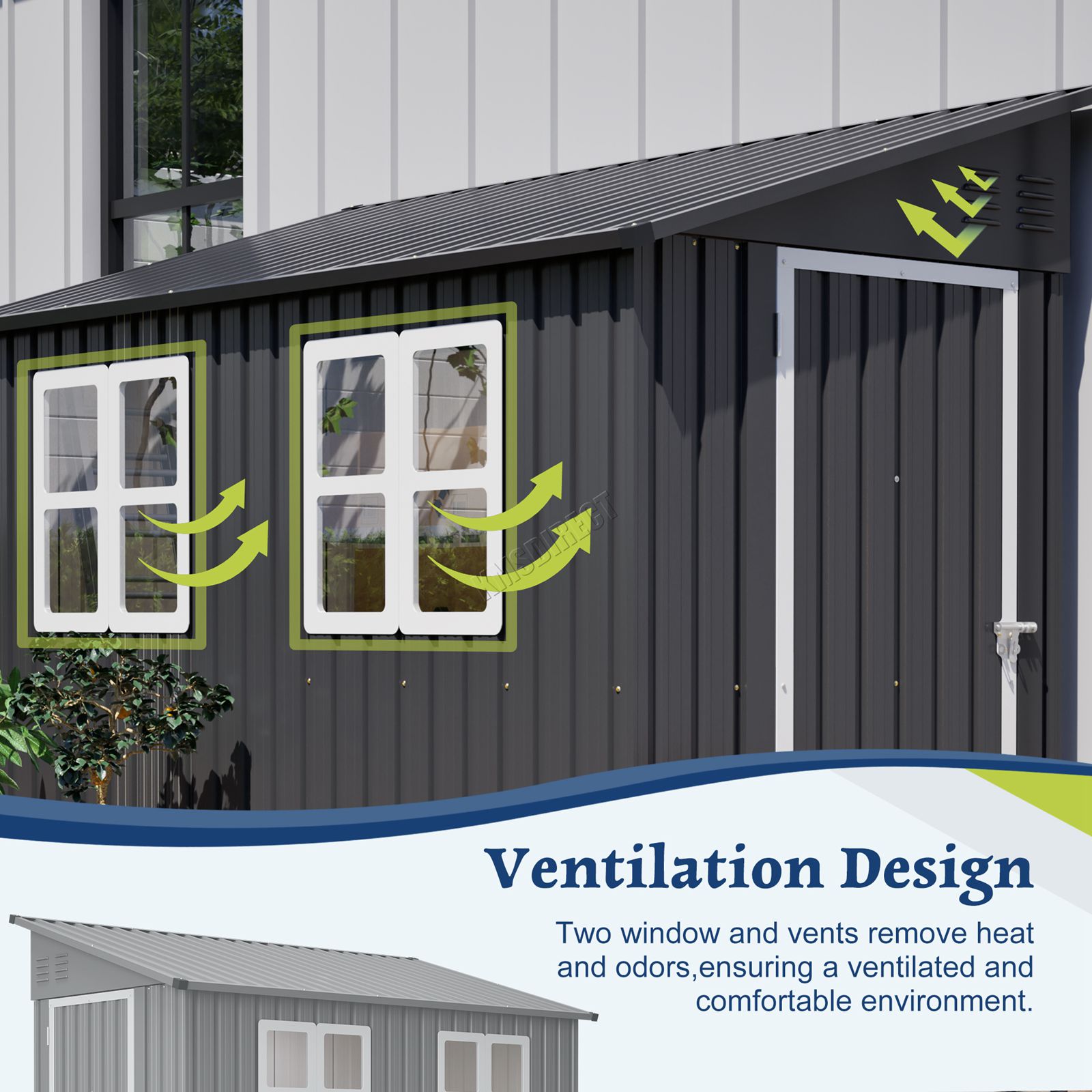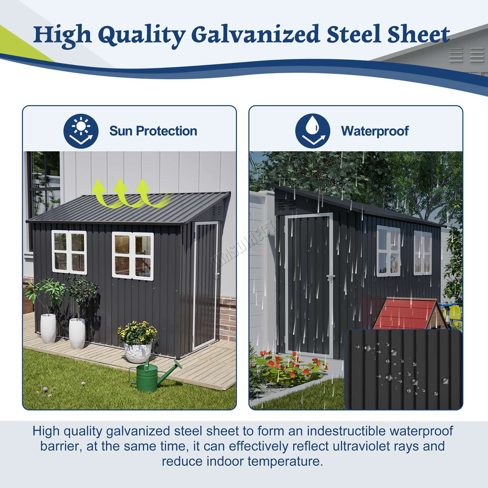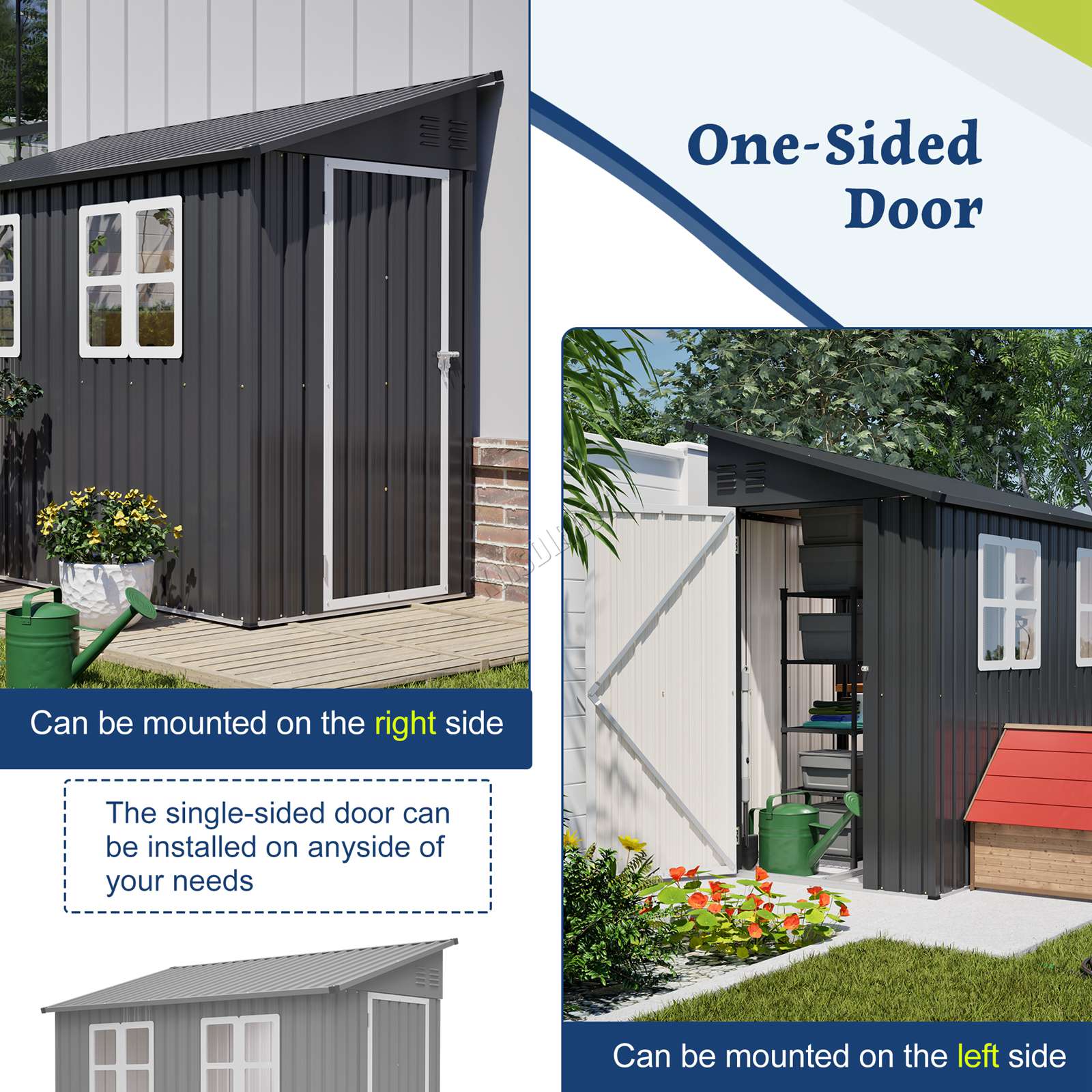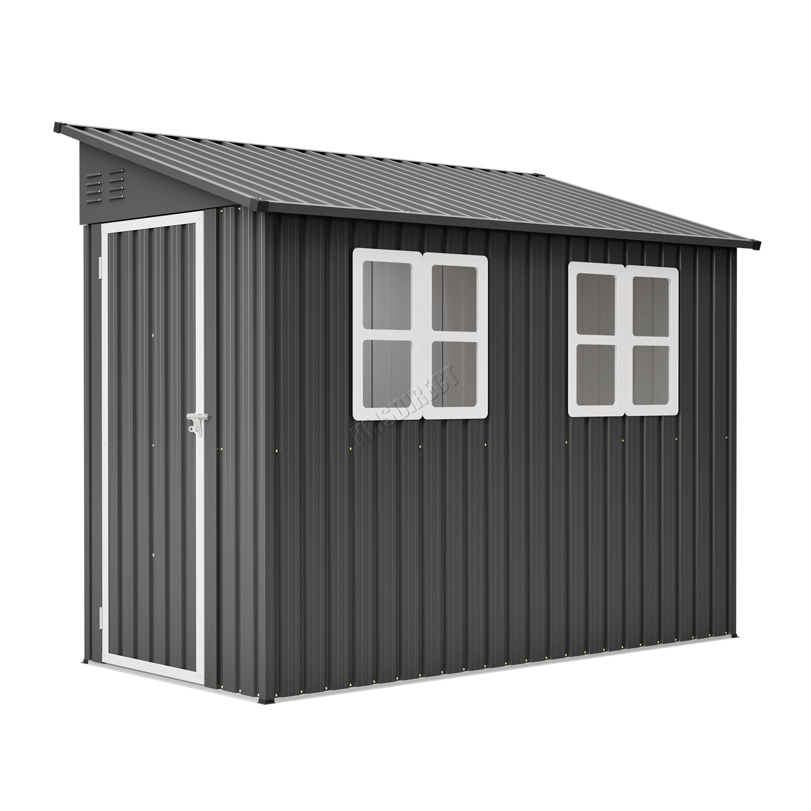 Birchtree - 4x8ft Lean To Garden Shed Metal Storage House Pent Roof Anthracite