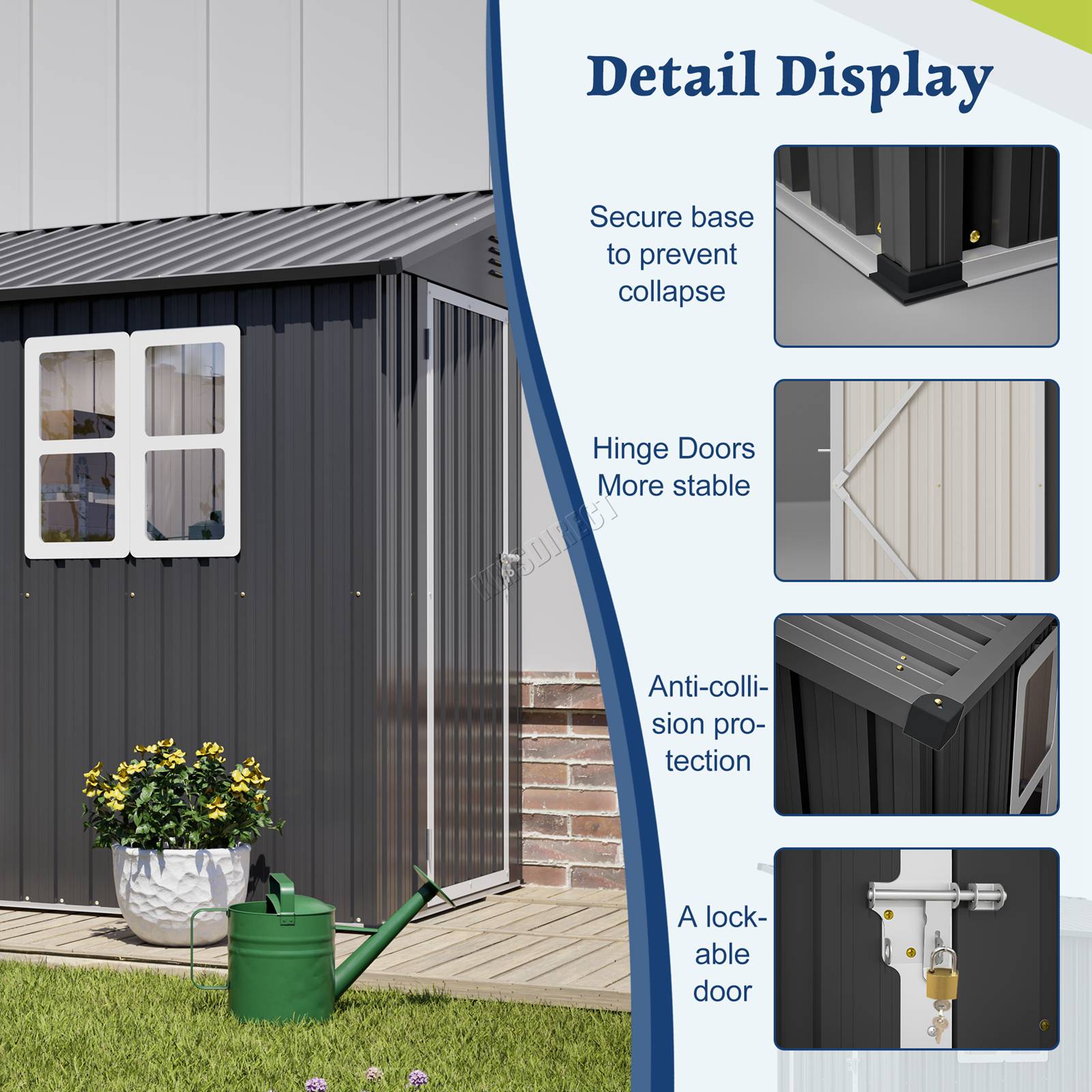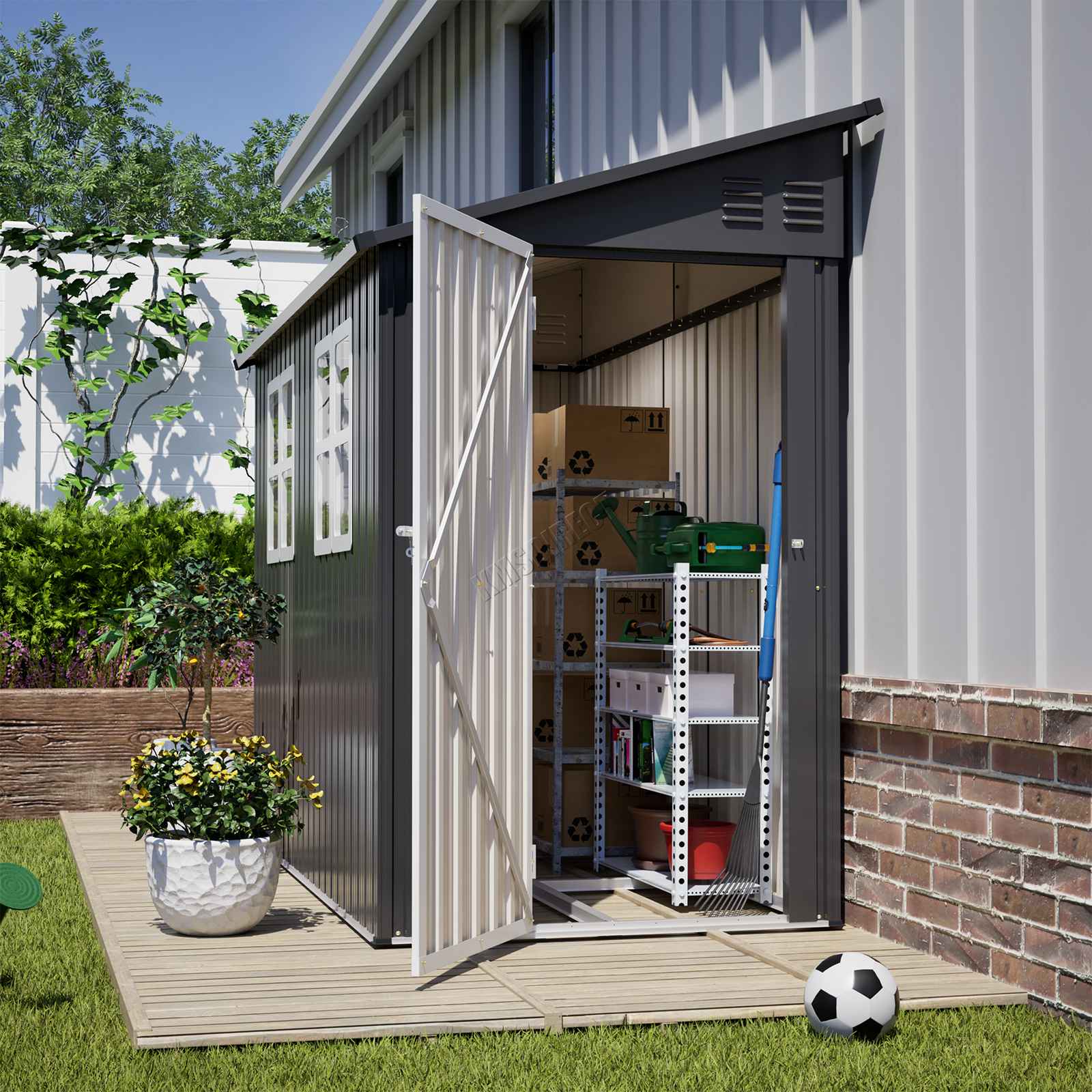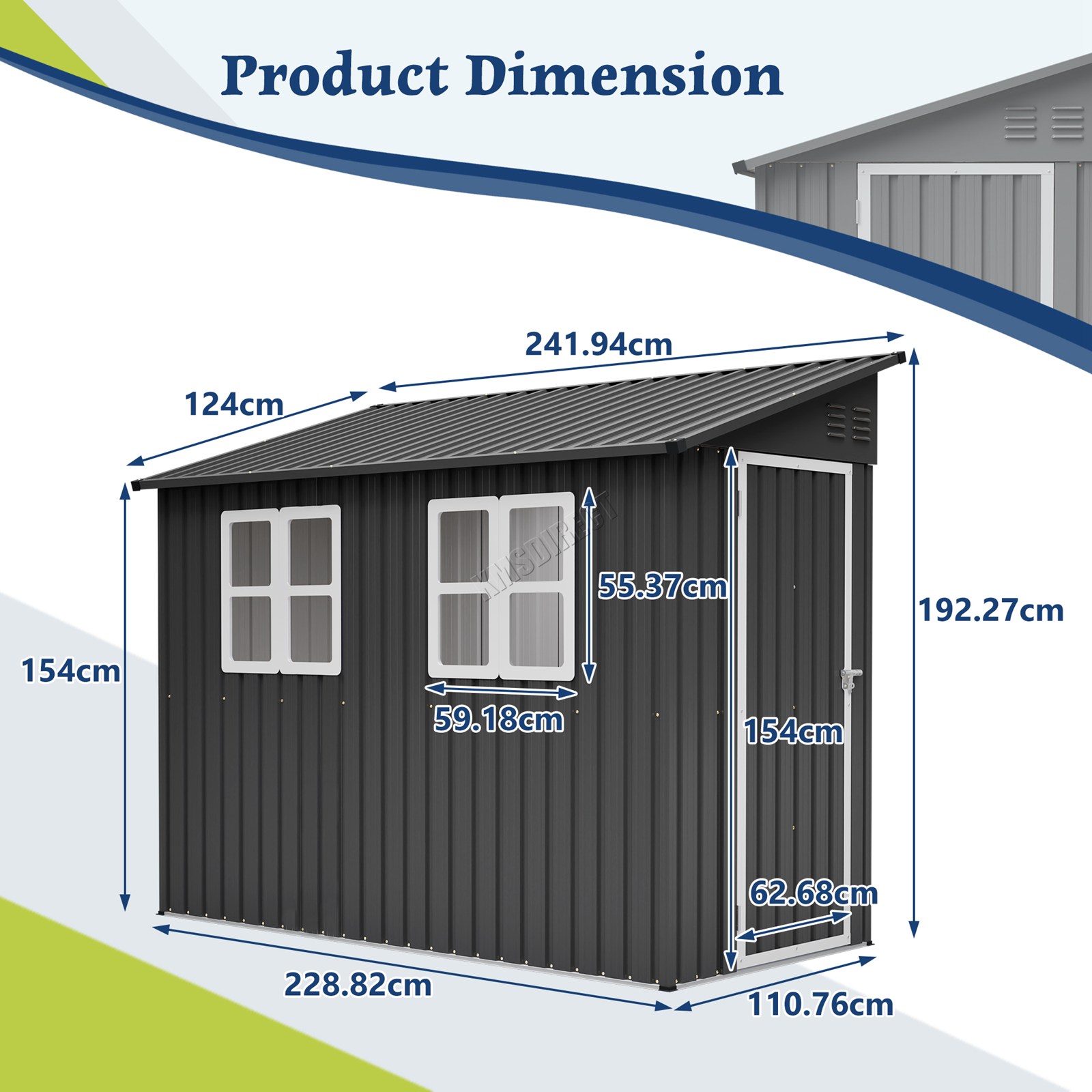 BIRCHTREE 4x8ft Lean To Garden Shed Metal Storage House Pent Roof Anthracite
