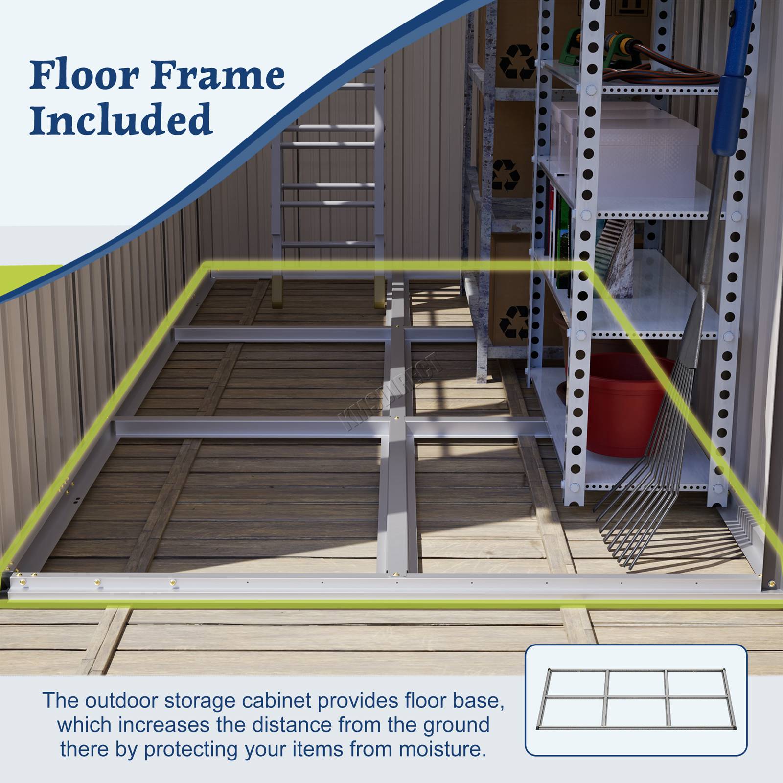 Outsunny 7 x 5FT Garden Shed w/ Foundation Lean to Metal Tool Shed Green
