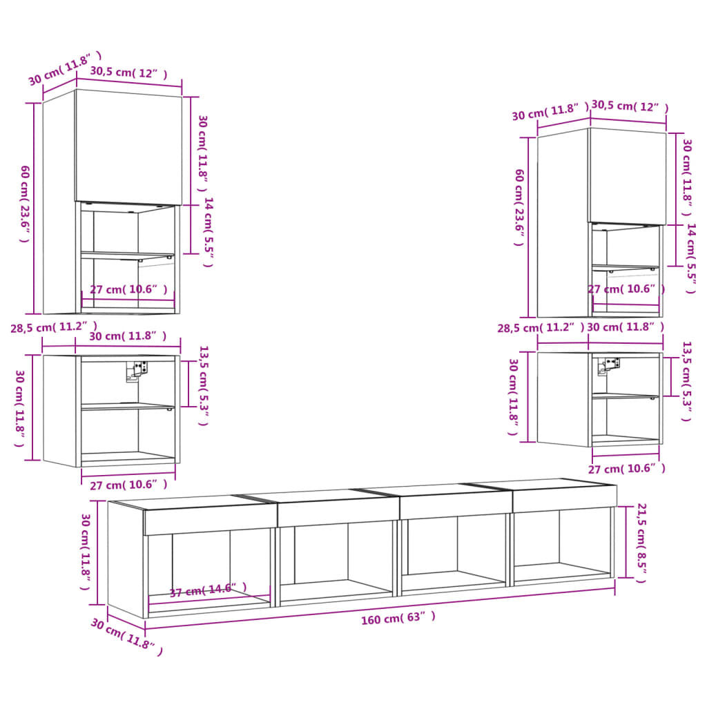 8 Piece TV Wall Units with LED Smoked Oak Engineered Wood vidaXL
