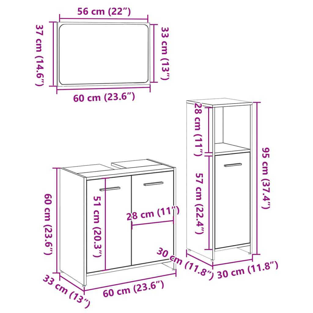 Bathroom furniture set grey sonoma 58x33x60cm engineered wood metal 3-piece slim