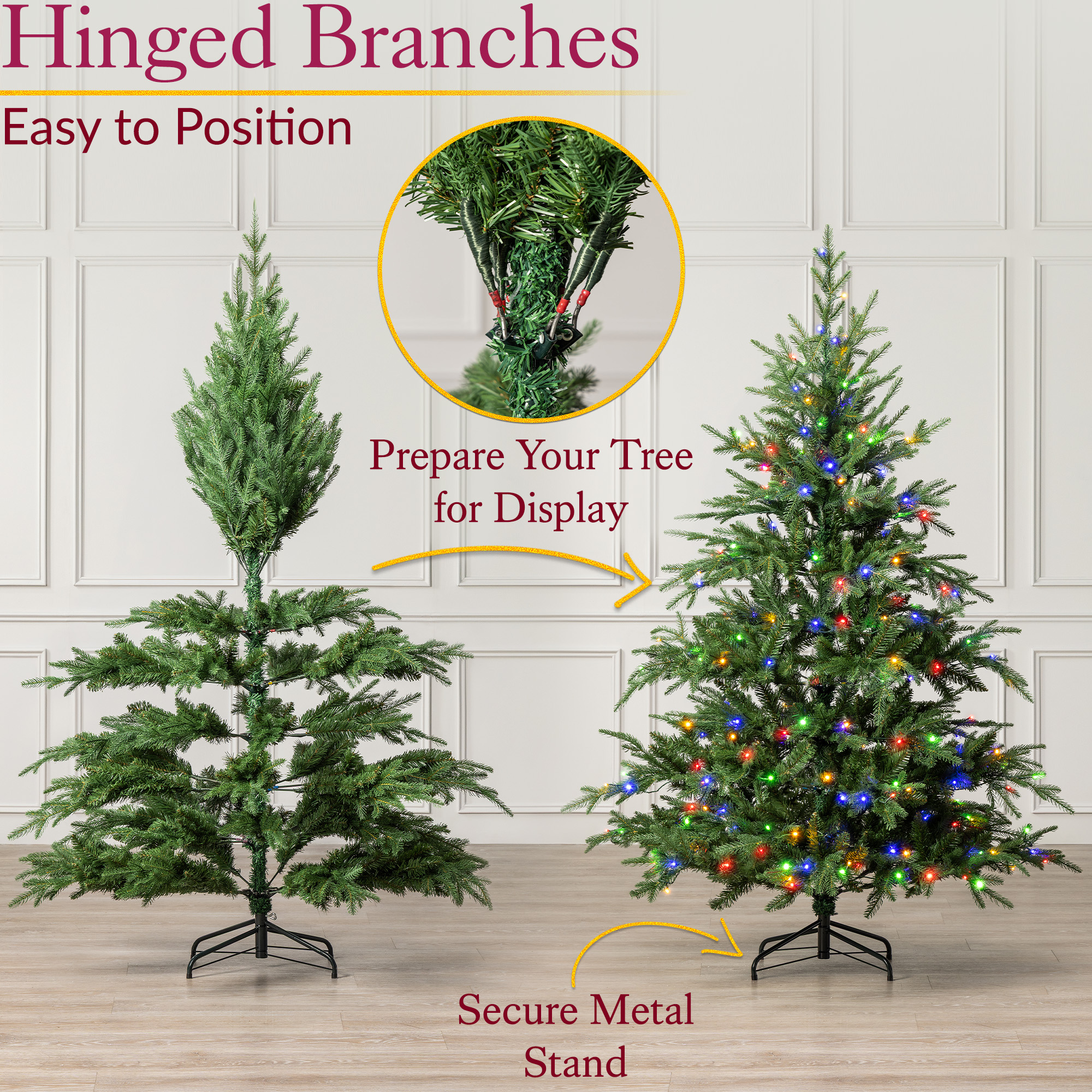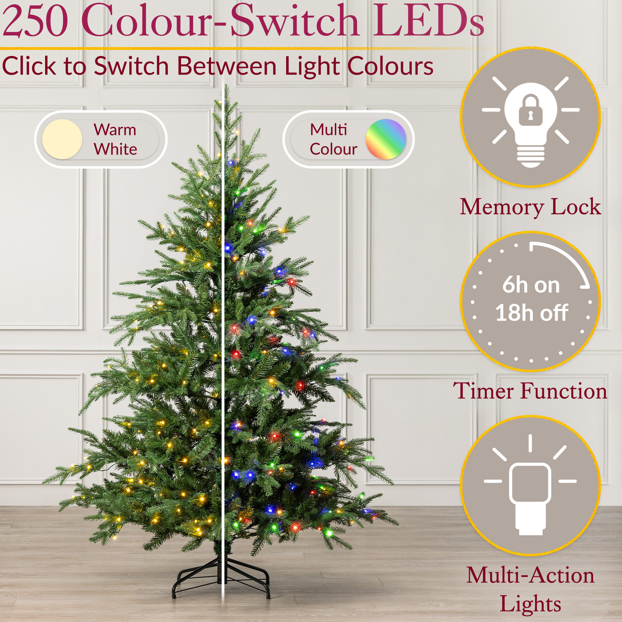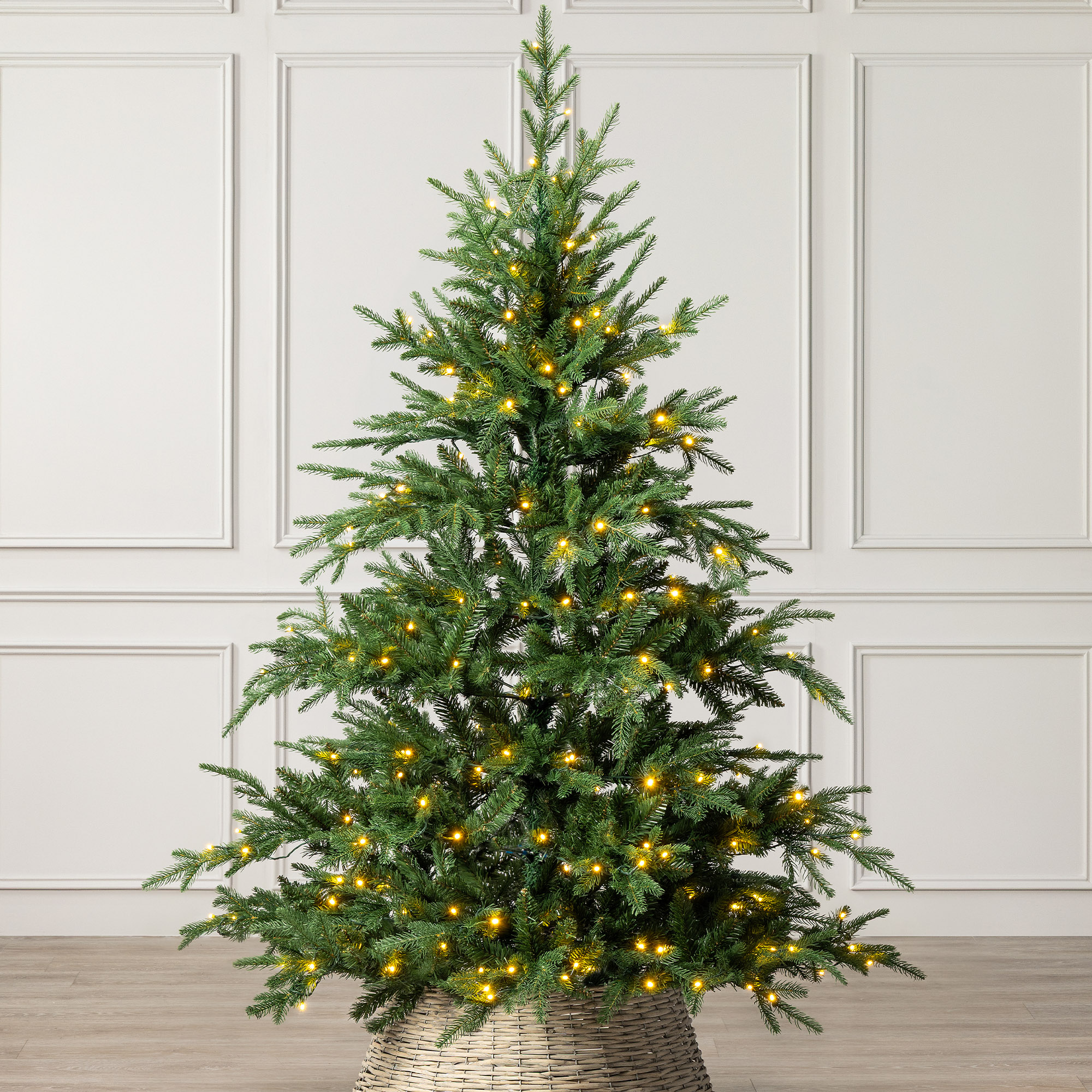 Christow Pre Lit Christmas Tree Nordmann Fir Colour Switch & Timer 6ft 7ft 8ft