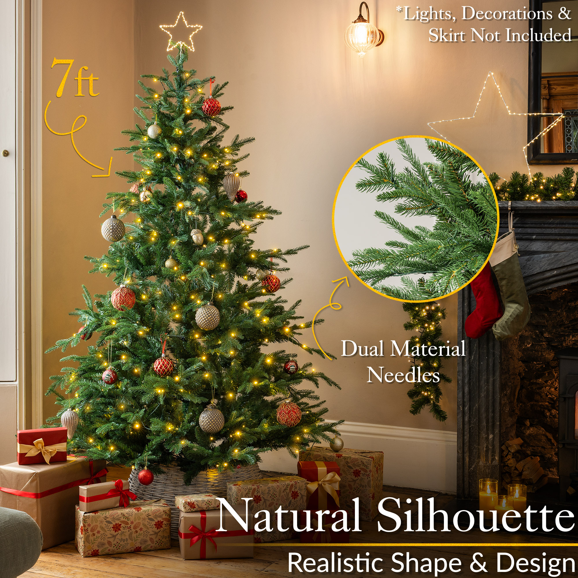 Christow Pre Lit Christmas Tree Verbier Fir Colour Switch & Timer 6ft 7ft 8ft in Green Green 7ft