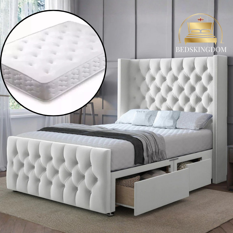 New Divan Winged Chesterfield Bed Plush Velvet Upholstered 48" Headboard UK Size