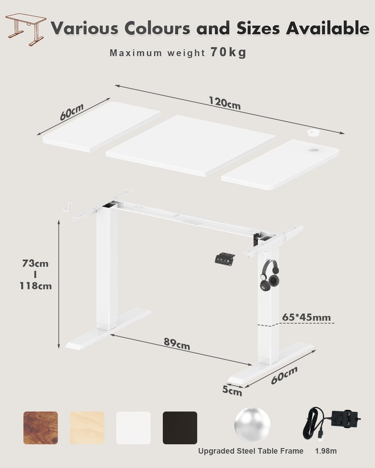 Electric Standing Desk 120X60Cm Sit Stand Table Height Adjustable with Backpack