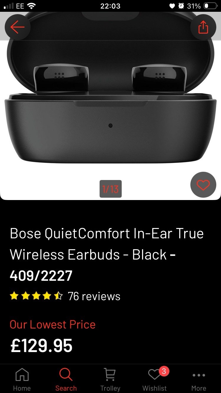 Bose QuietComfort Earbuds. Black. Noise Cancelling In Ear Headphones.