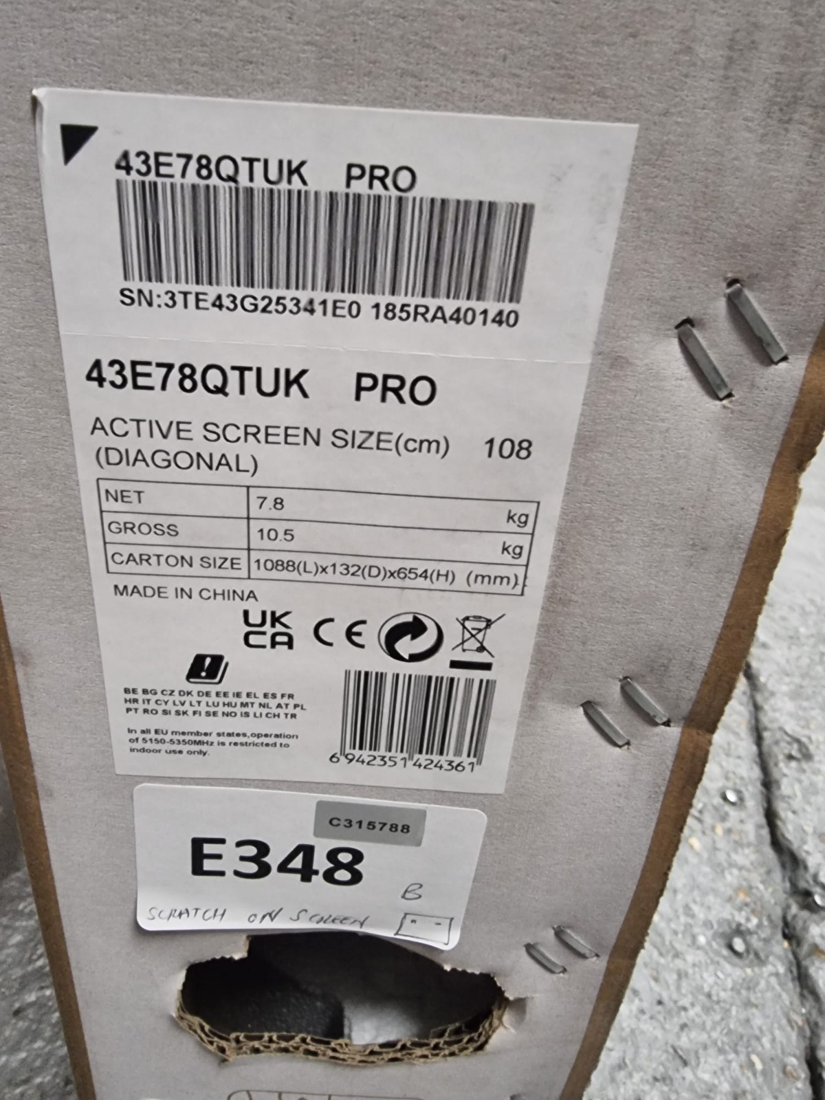 Hisense 43E78QTUK PRO. 43" QLED HD Smart TV. Experience a visual treat with QLED Colour. Hisense 58E7NQTUK 58" Smart 4K UHD HDR QLED Freely TV. Hisense 58" 58E7QTUK Smart 4K UHD HDR QLED Freely TV. Screen Technology QLED.