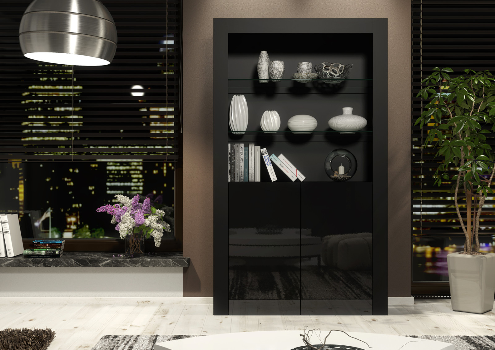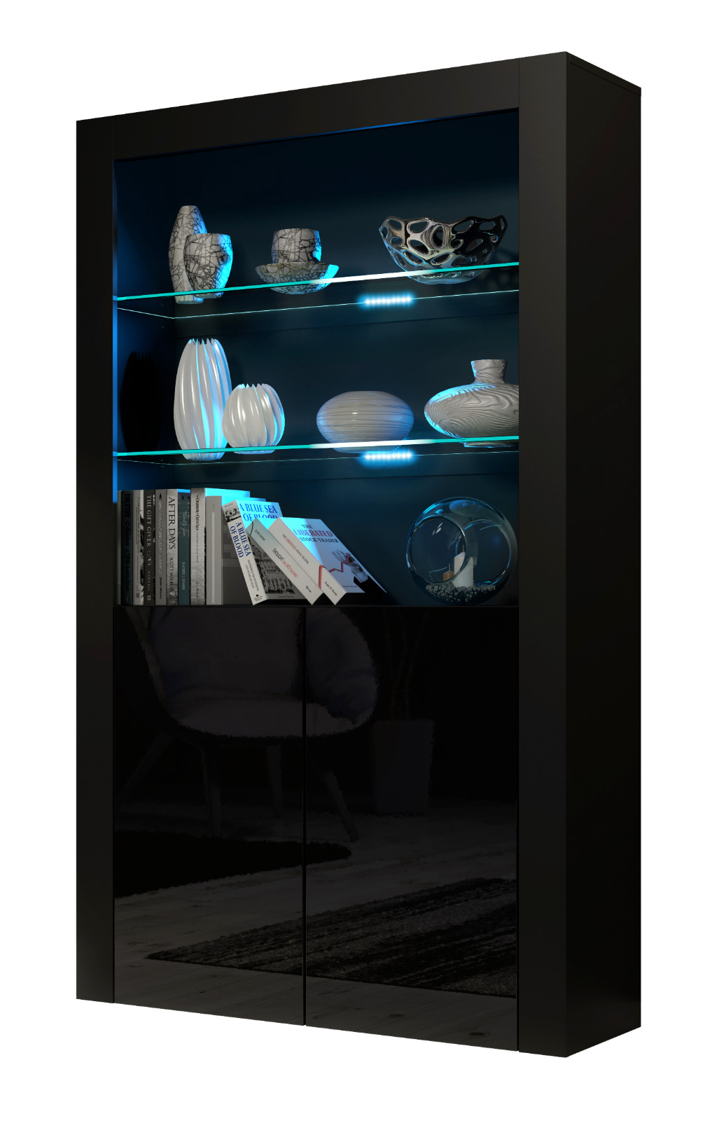 Display Cabinet 170cm High Gloss Doors LED Modern Showcase Sideboard – LUNARO