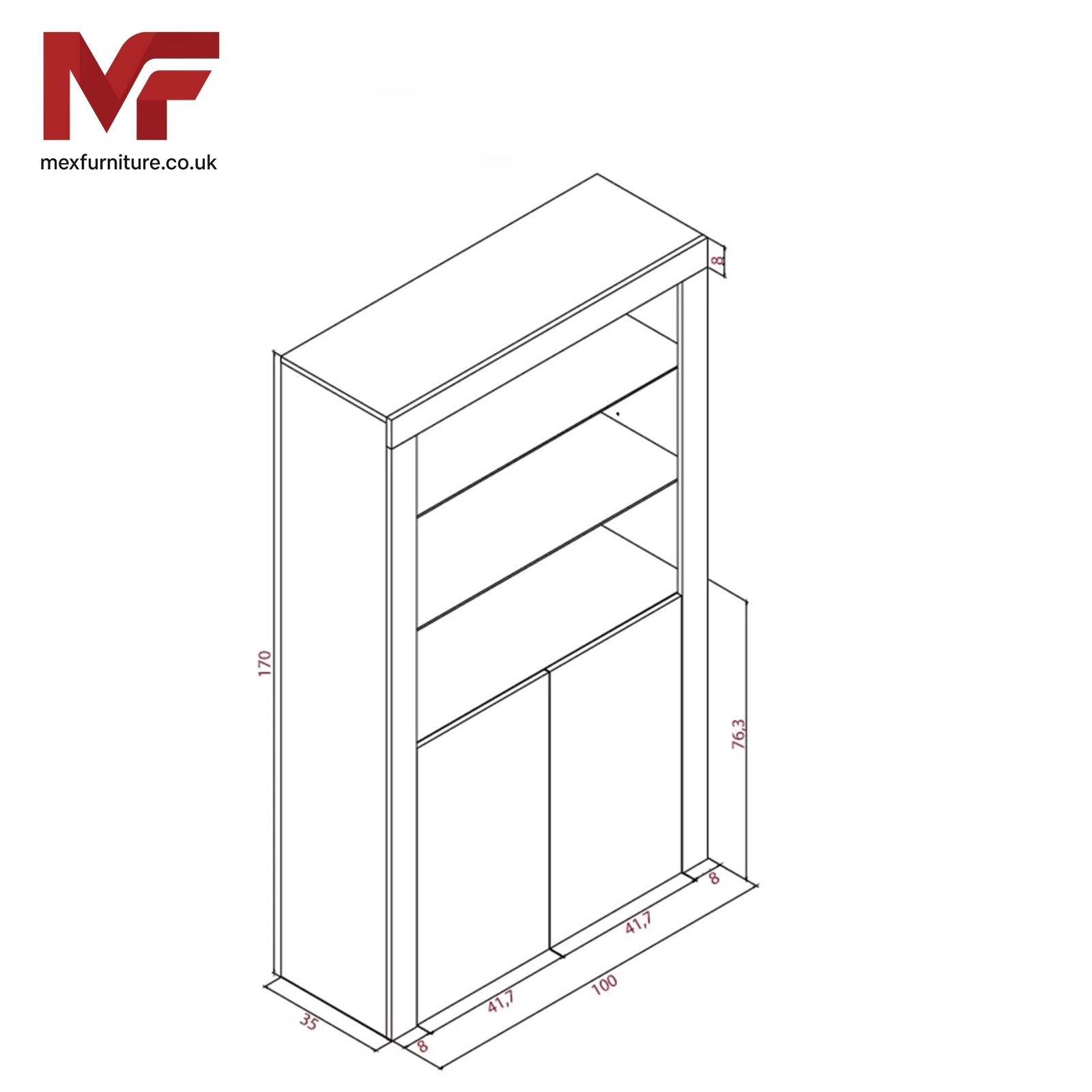 170cm Cabinet Sideboard I Display Unit Cupboard I High Gloss Doors with Free LED