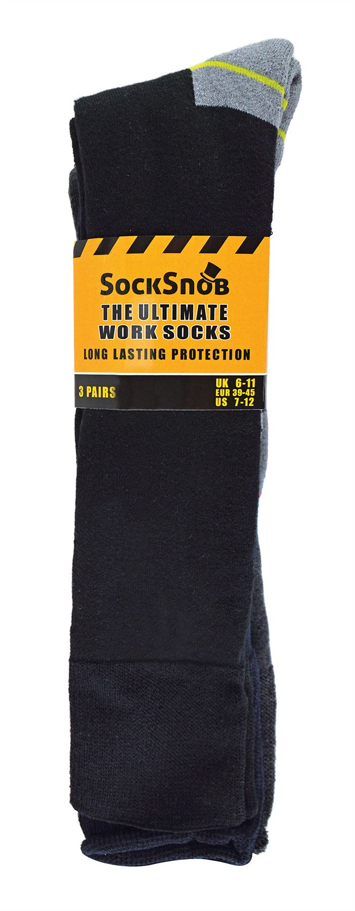 Sock Snob 3 Pack Mens Heavy Duty Cotton Hi Viz Work Socks - Multicolour - Size Uk 6-11