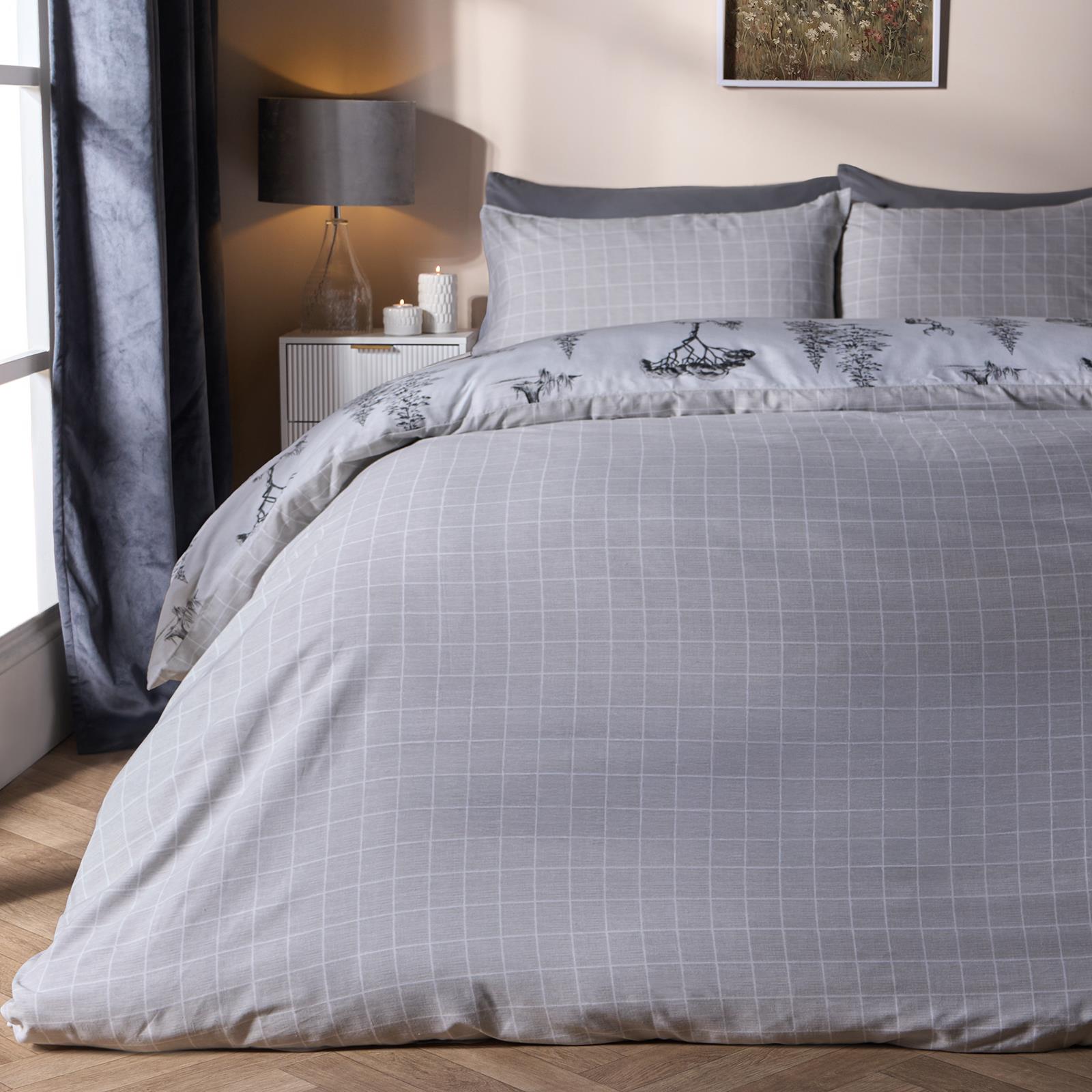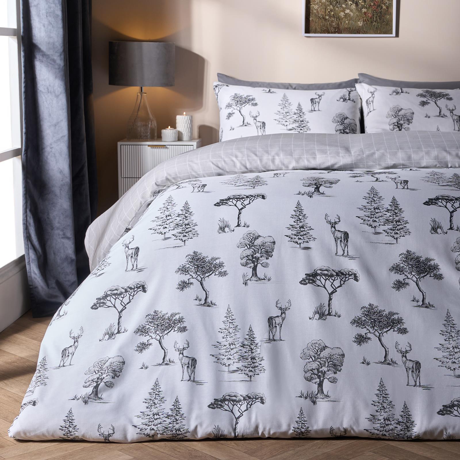 OHS Stag Tree Reversible Bedding Set Xmas Duvet Cover with Pillowcase in Charcoal Size: Double Charcoal Double