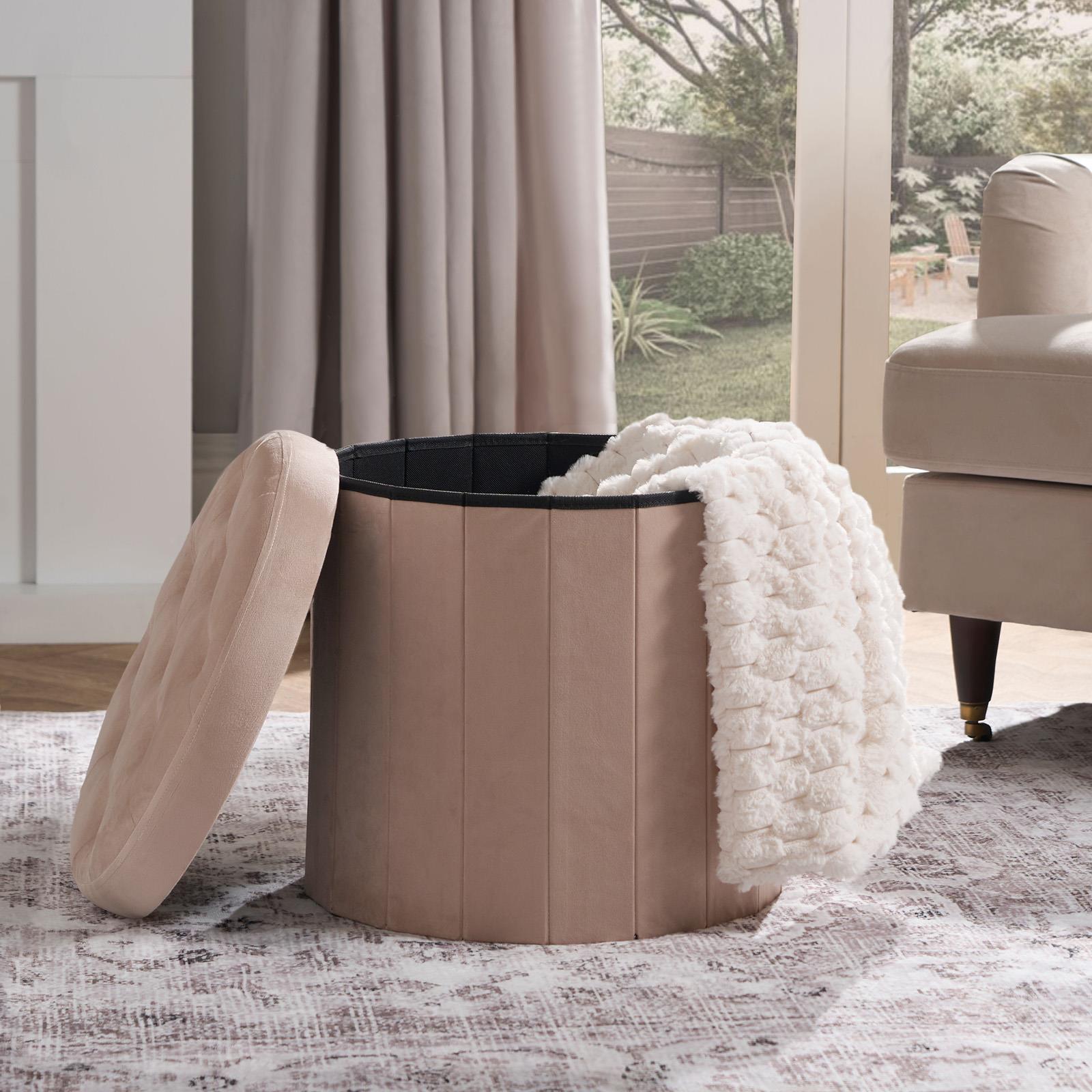 OHS Storage Box Lid Ottoman Folding Ribbed Fleece Footstool Tub Seat