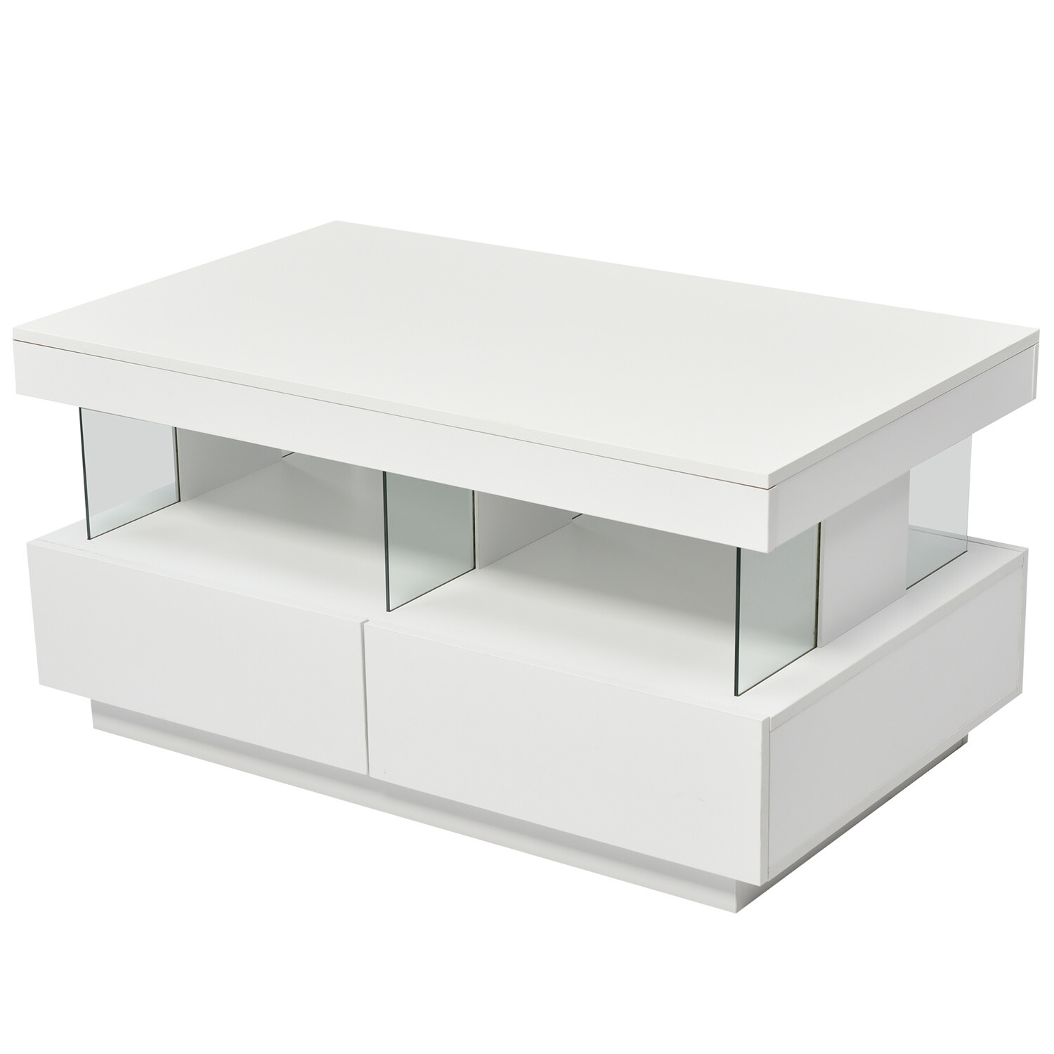 High Gloss LED Coffee Table With Storage 2 Drawers Modern Living Room Furniture