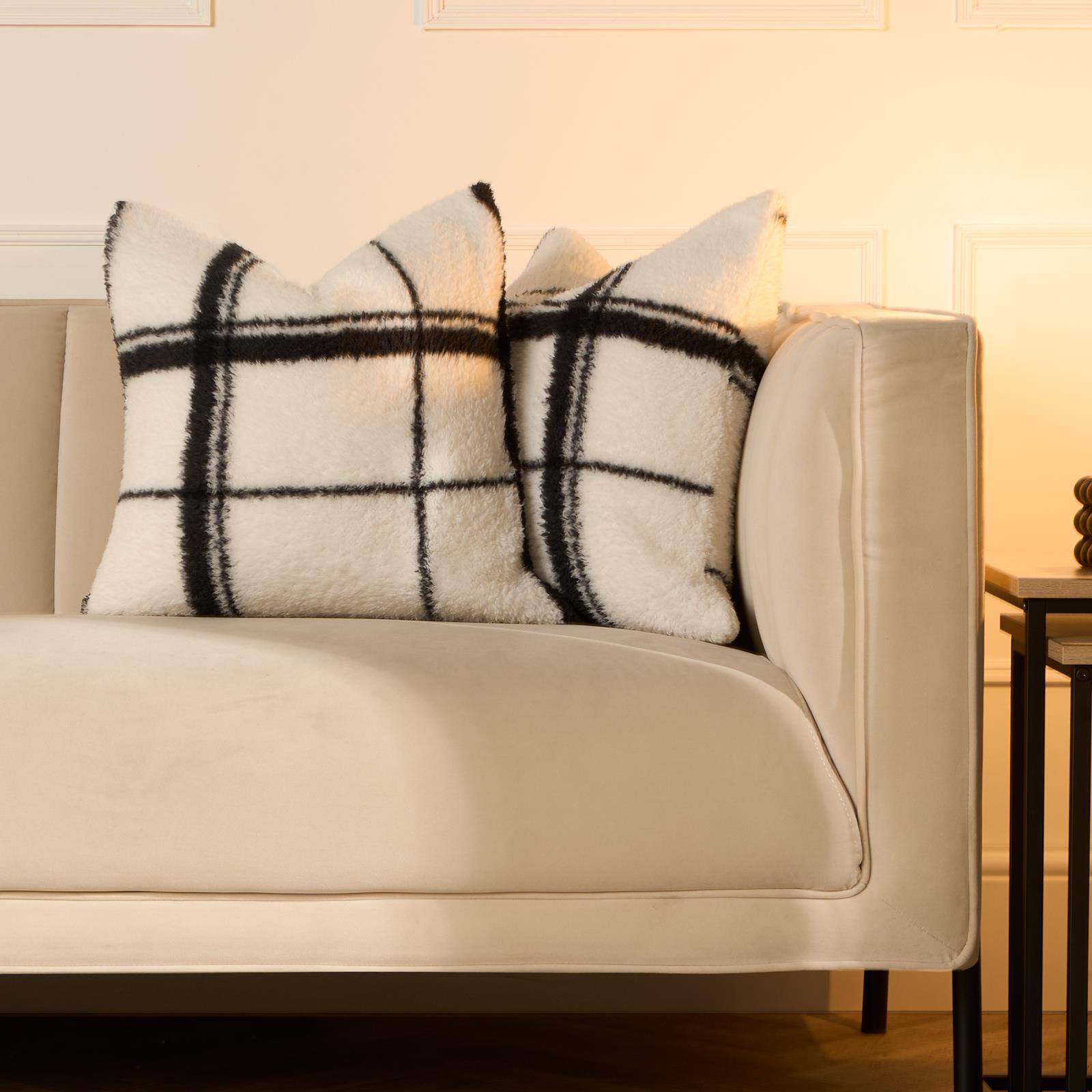 OHS Winter Check Cushion Covers 2 Pack Cases Teddy Fleece Square Pillowcases