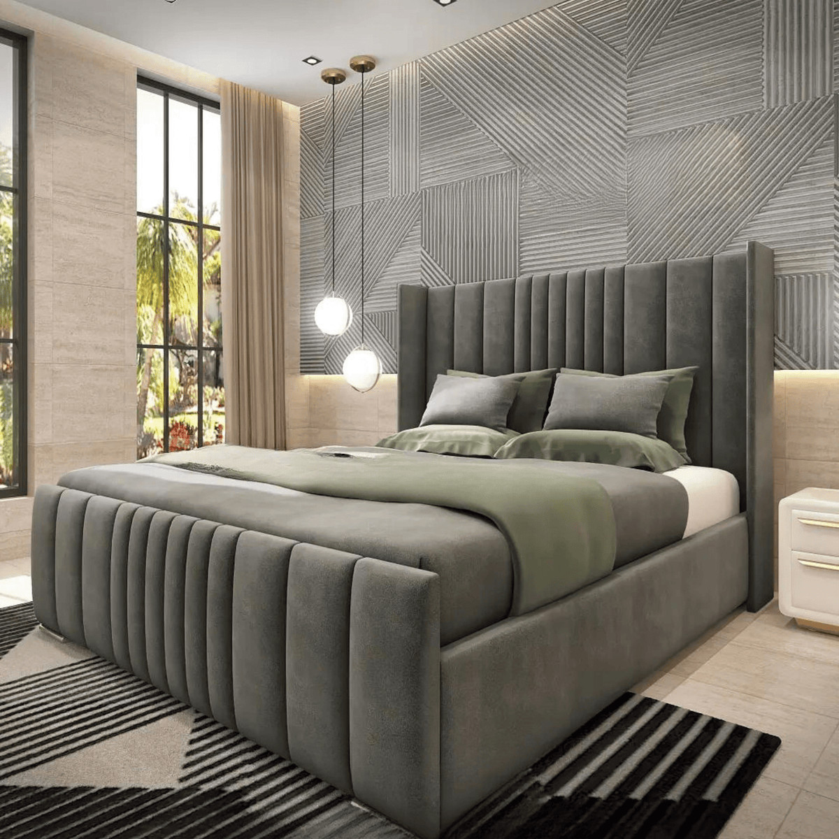 New Divan Winged Panel Bed Set Plush Velvet Upholstered Side Lift Opening Double