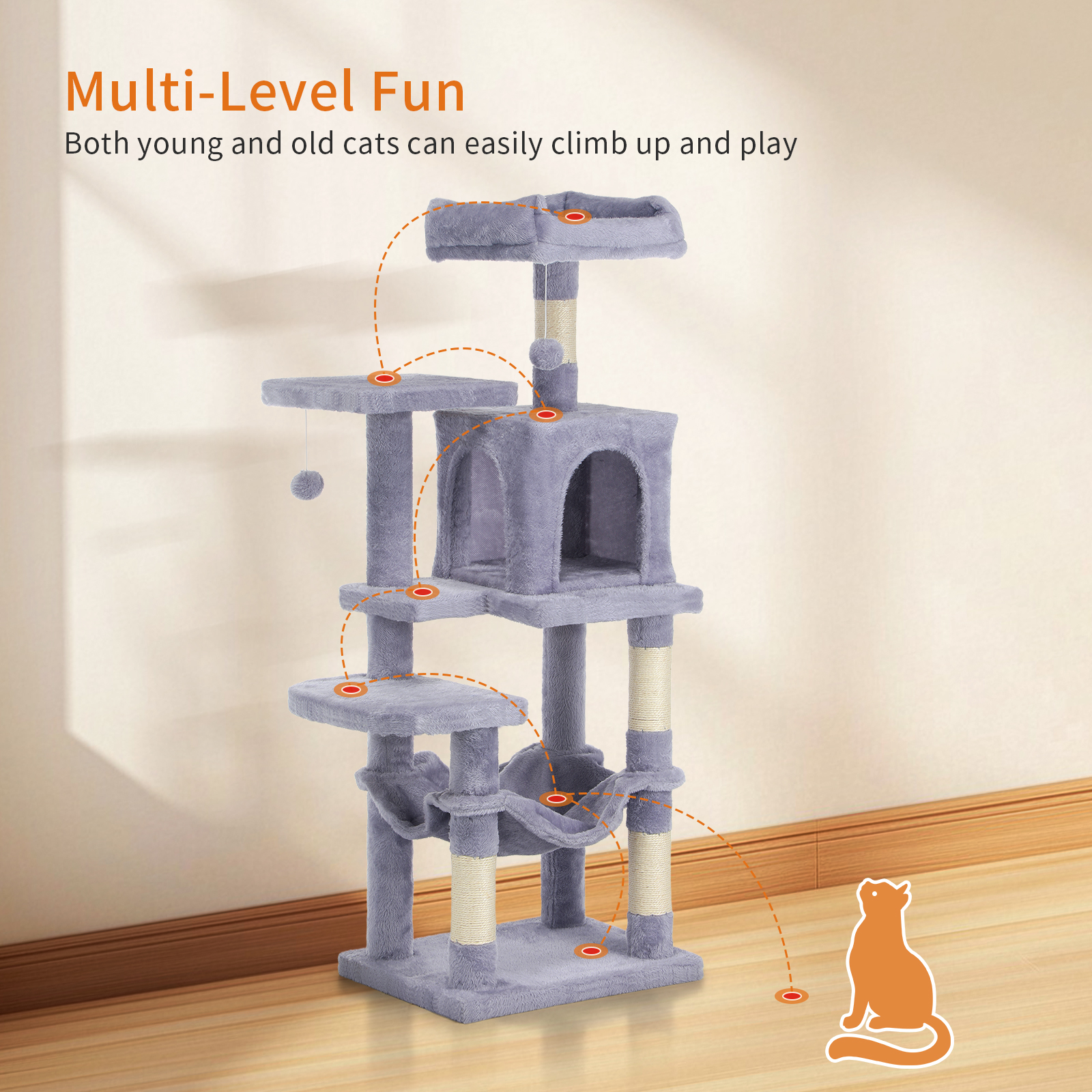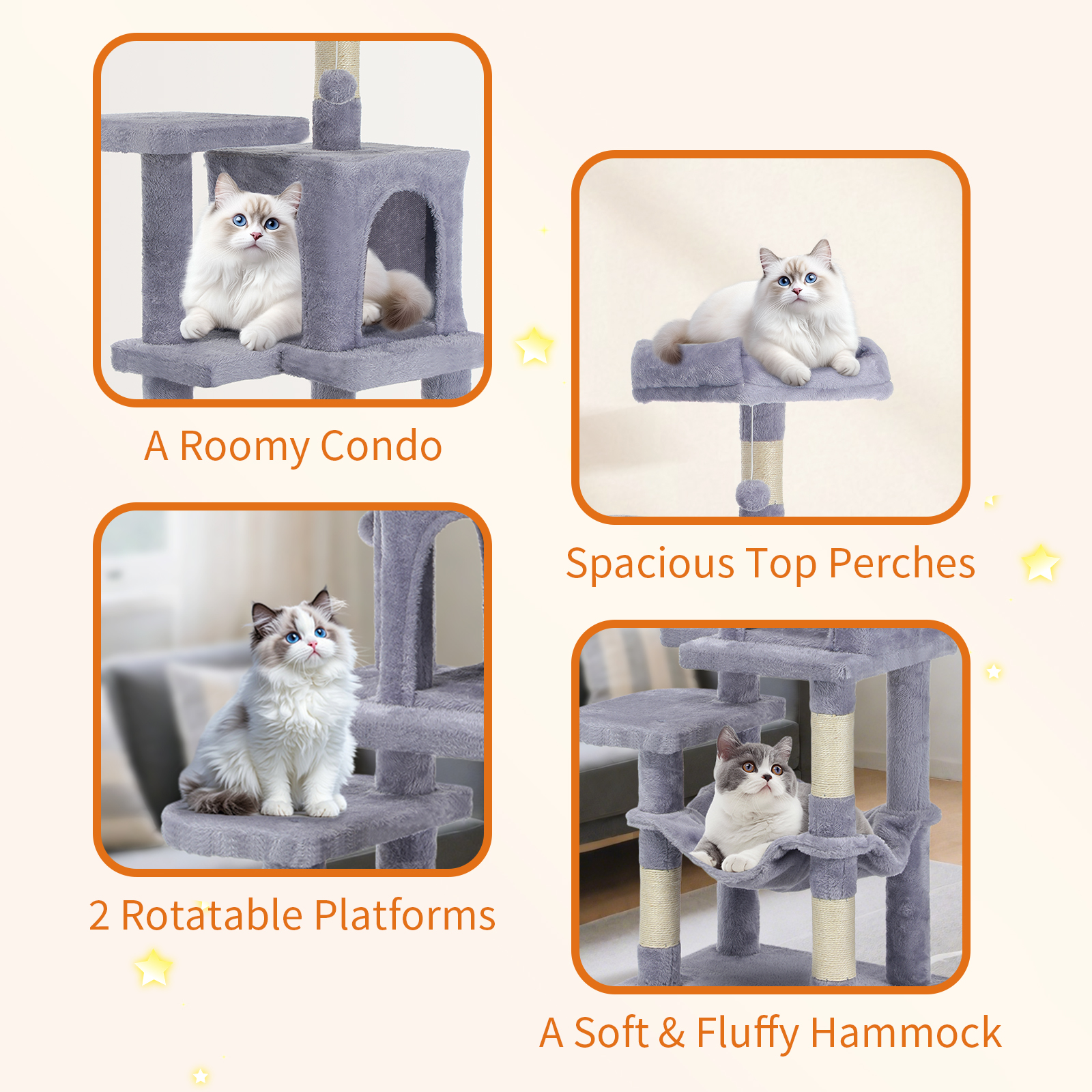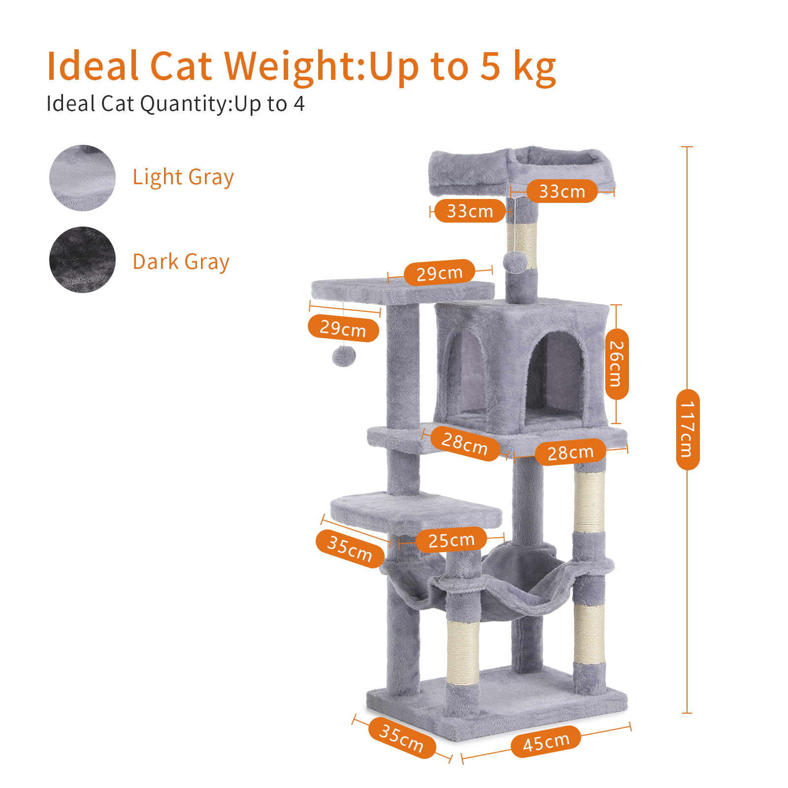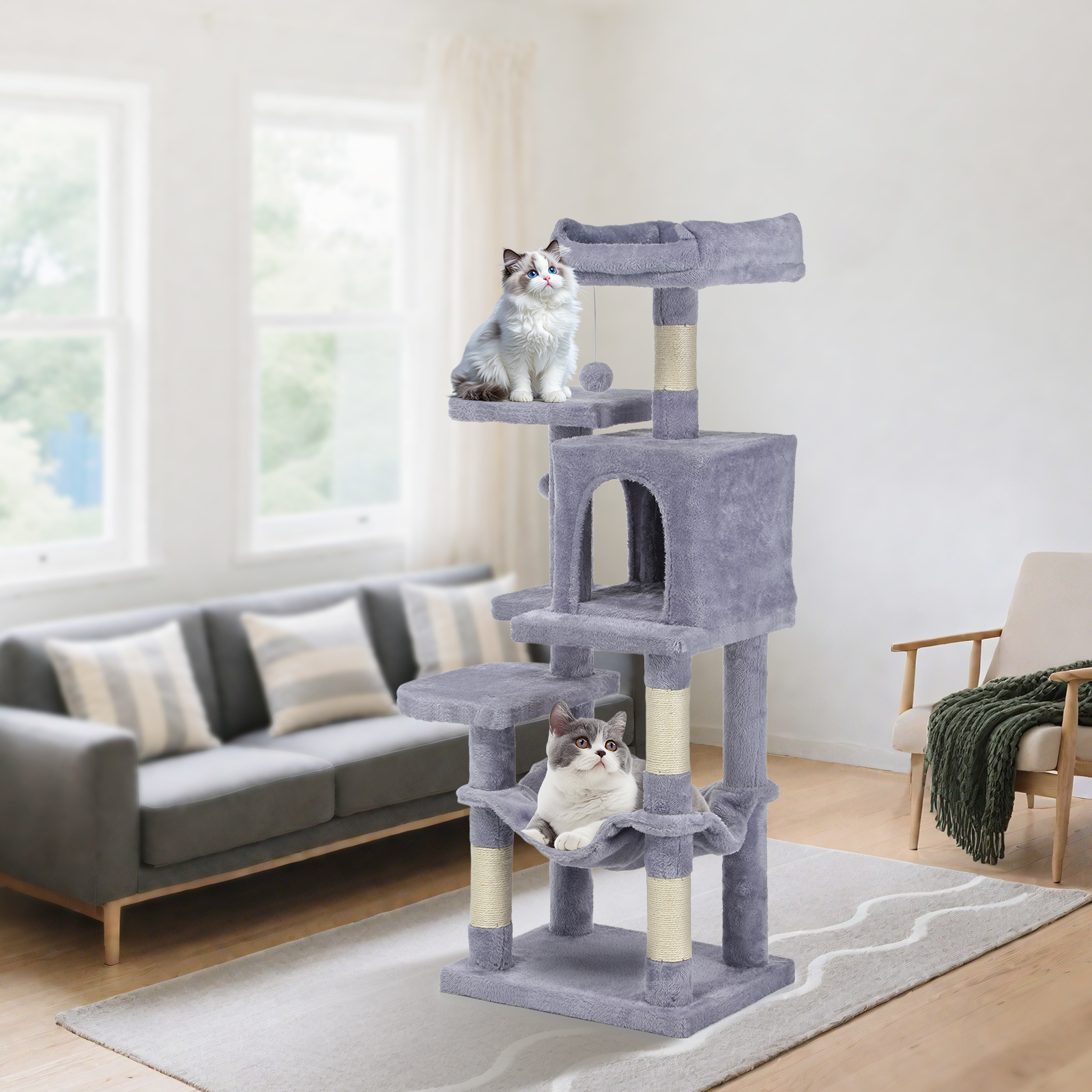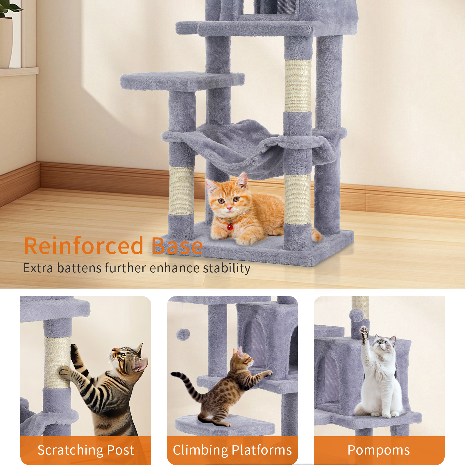 Large Cat Tree Activity Centre Multilevel Scratching Post Climbing Tower Hammock