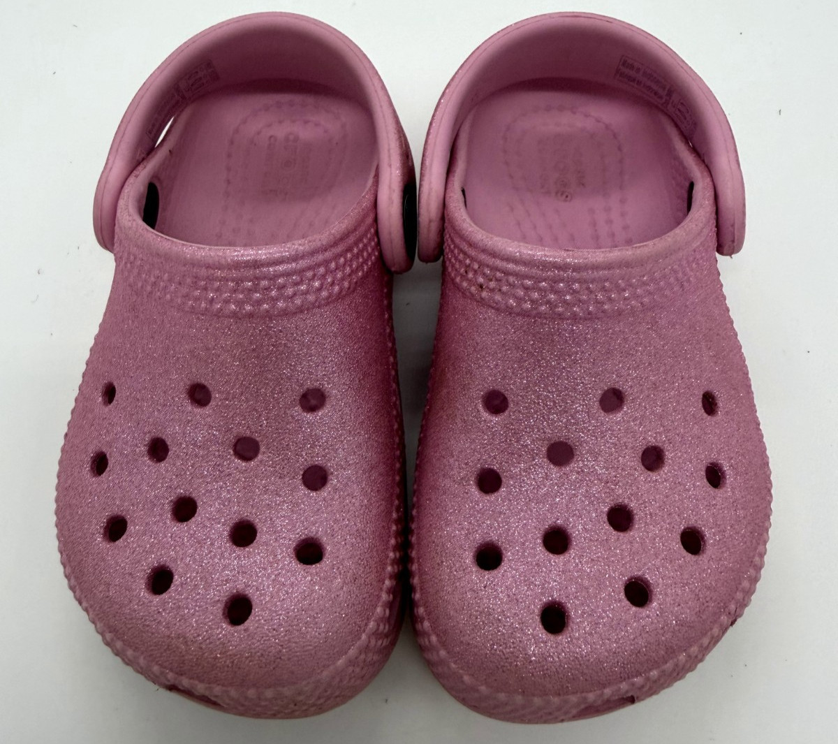Crocs Girls Classic Glitter Lightweight Summer Clogs Hot Holiday Slip On Shoes.