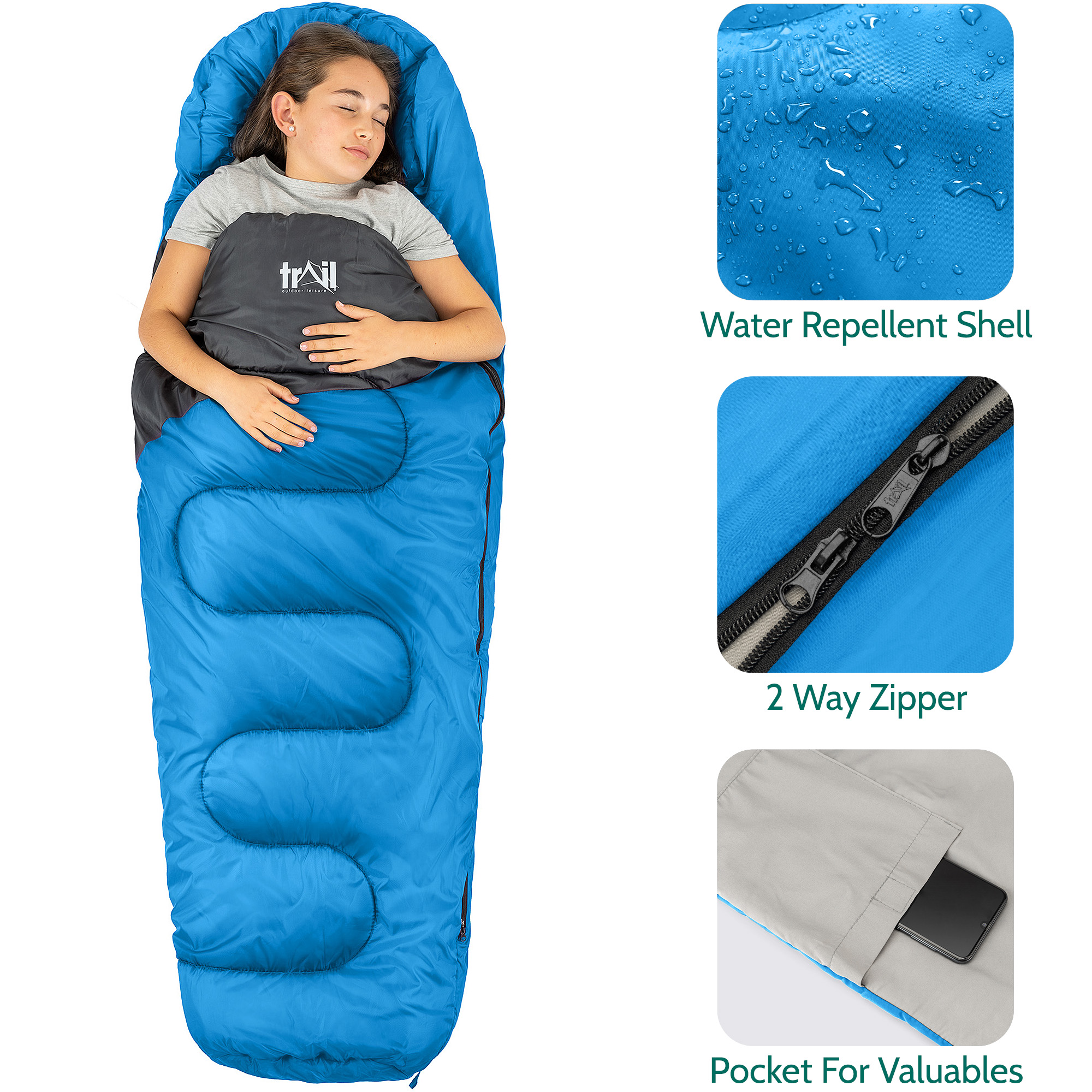 Kids Sleeping Bag 2 Season Mini Junior Envelope Outdoor Camping 200gsm Trail