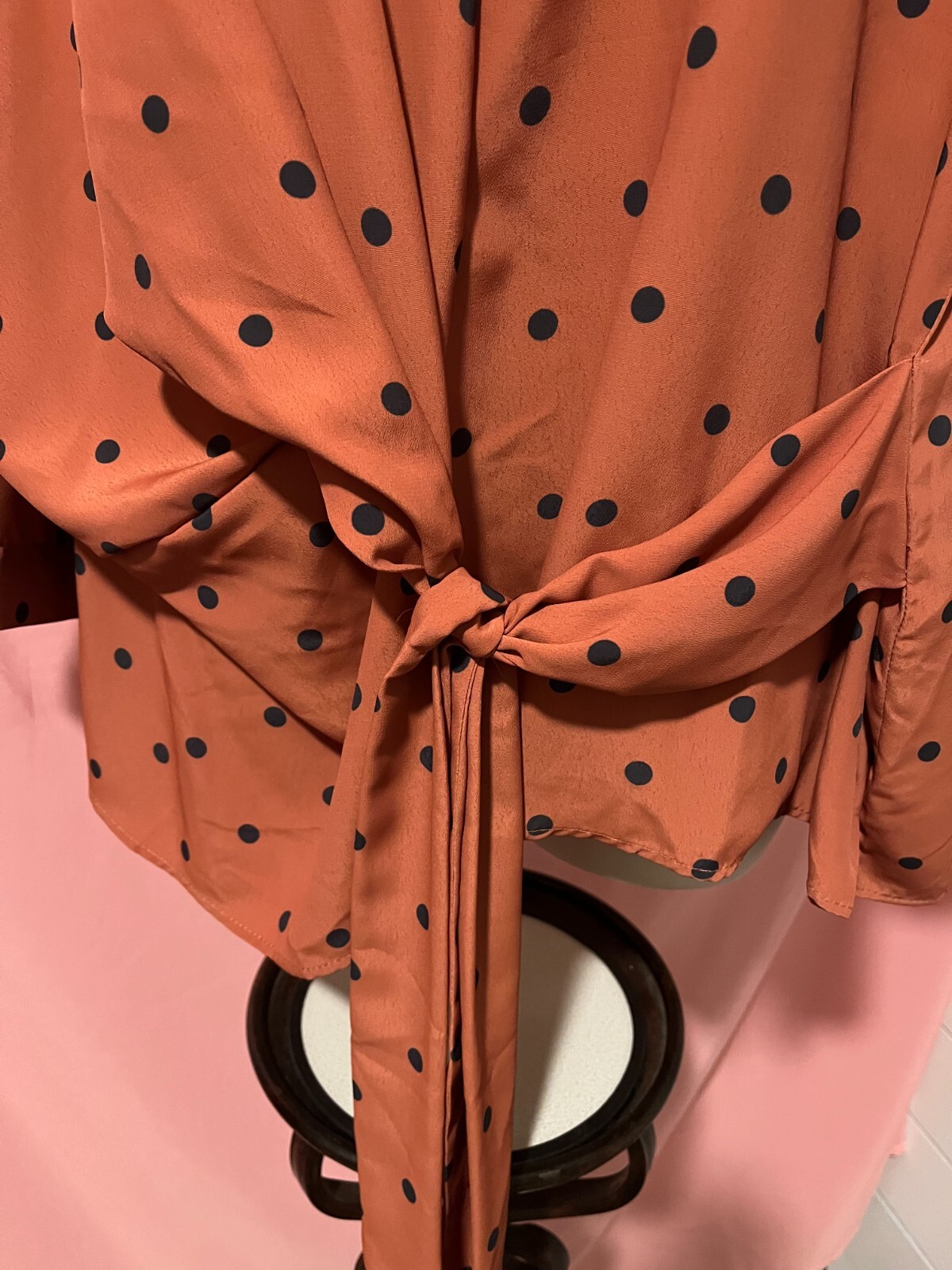 NWOT- BOOHOO - Women's Plus sz 20 Unique Side Tie Long Sleeve Polka Dot Blouse