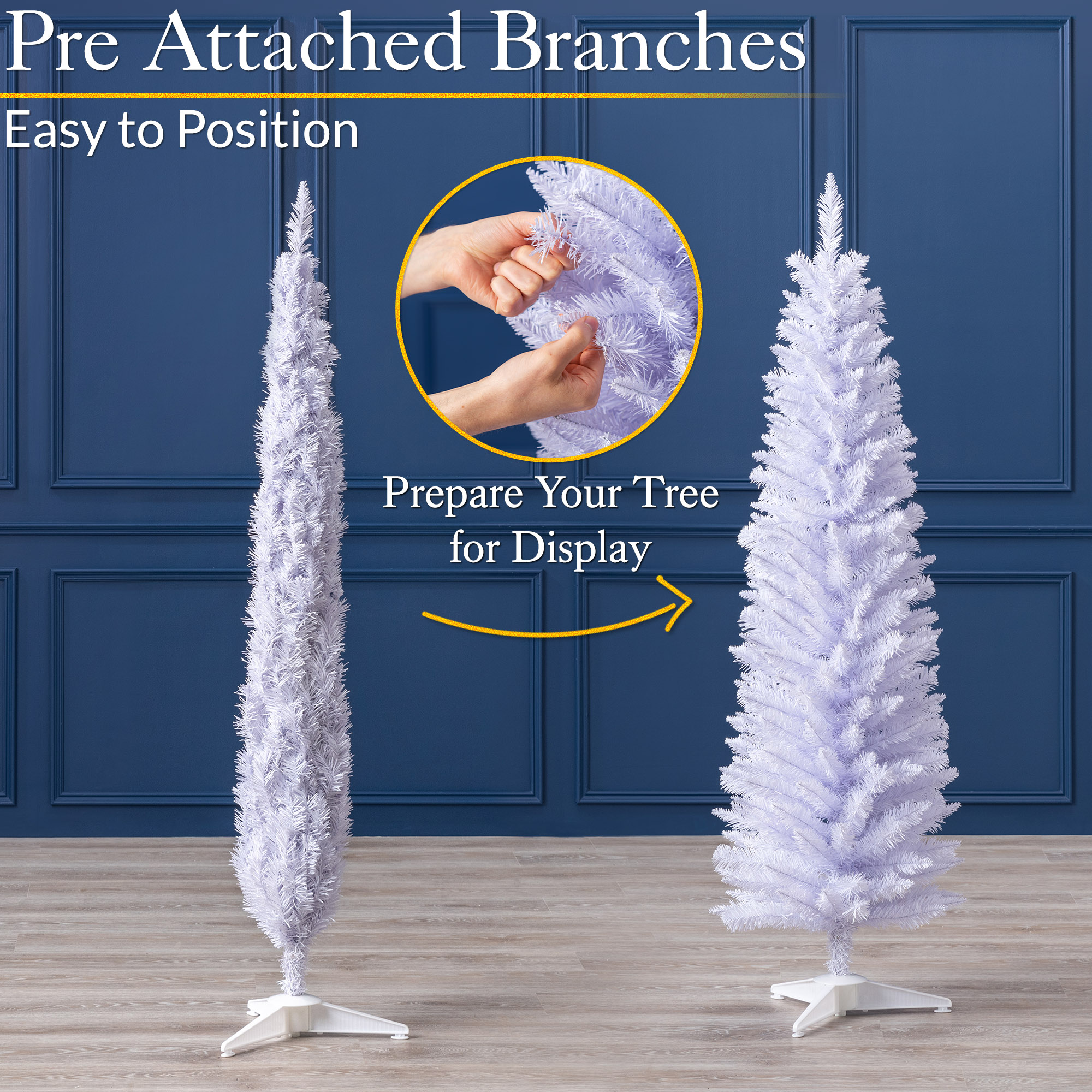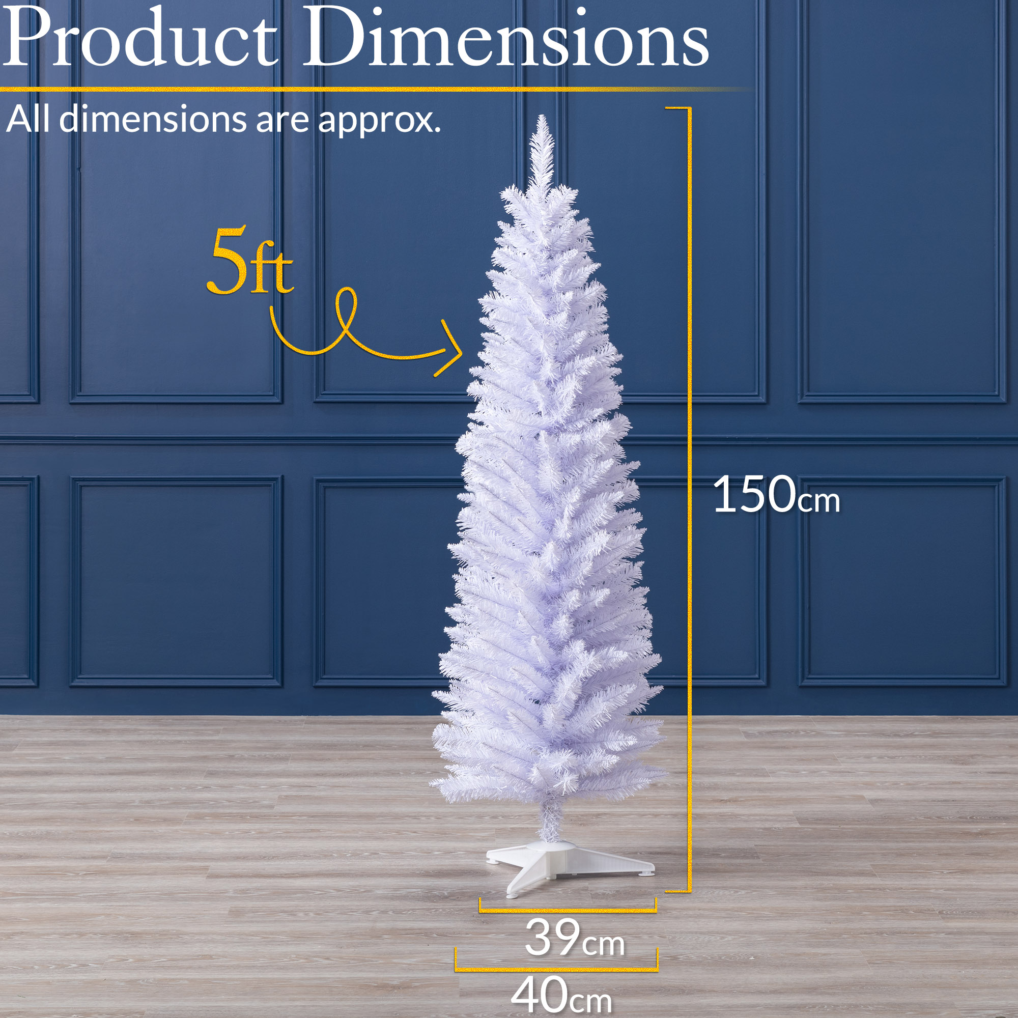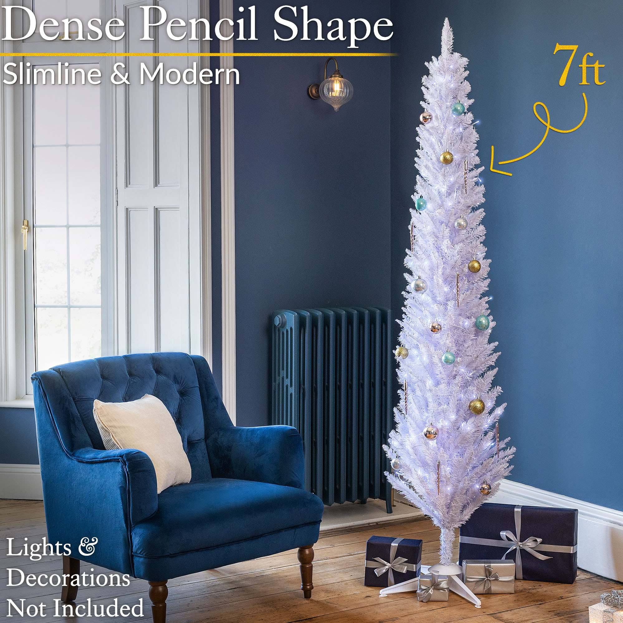 Christow White Christmas Tree 5ft 6ft 7ft Artificial Slim Pencil Xmas Spruce With Stand White 7ft