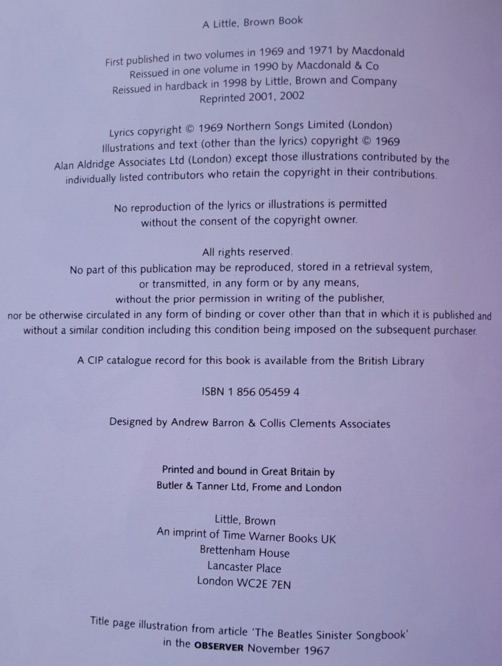 The Beatles Illustrated Lyrics Boo edited by Alan Aldridge Hardback 1998