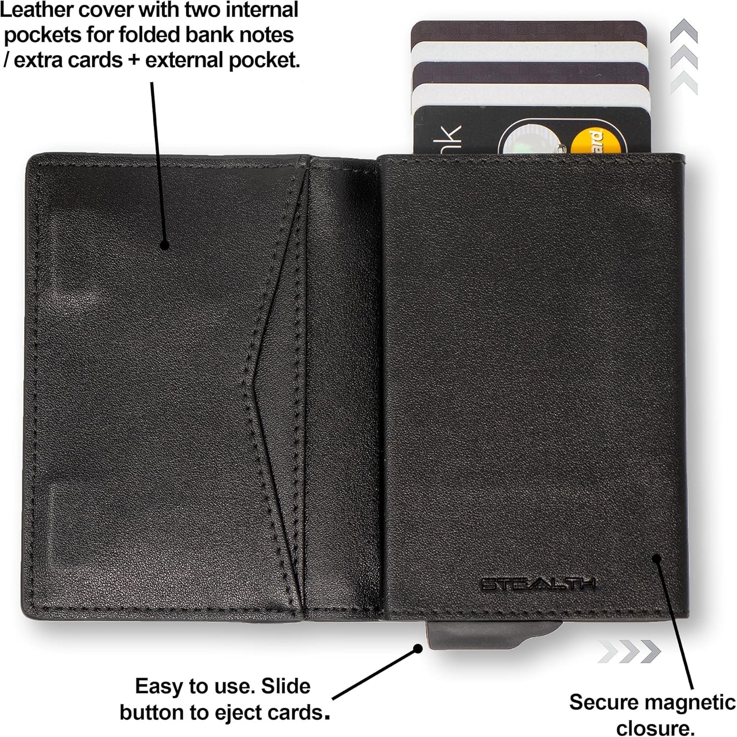 STEALTH Wallet | Aluminium & Leather RFID Blocking Card Holder Pop-Up Wallet