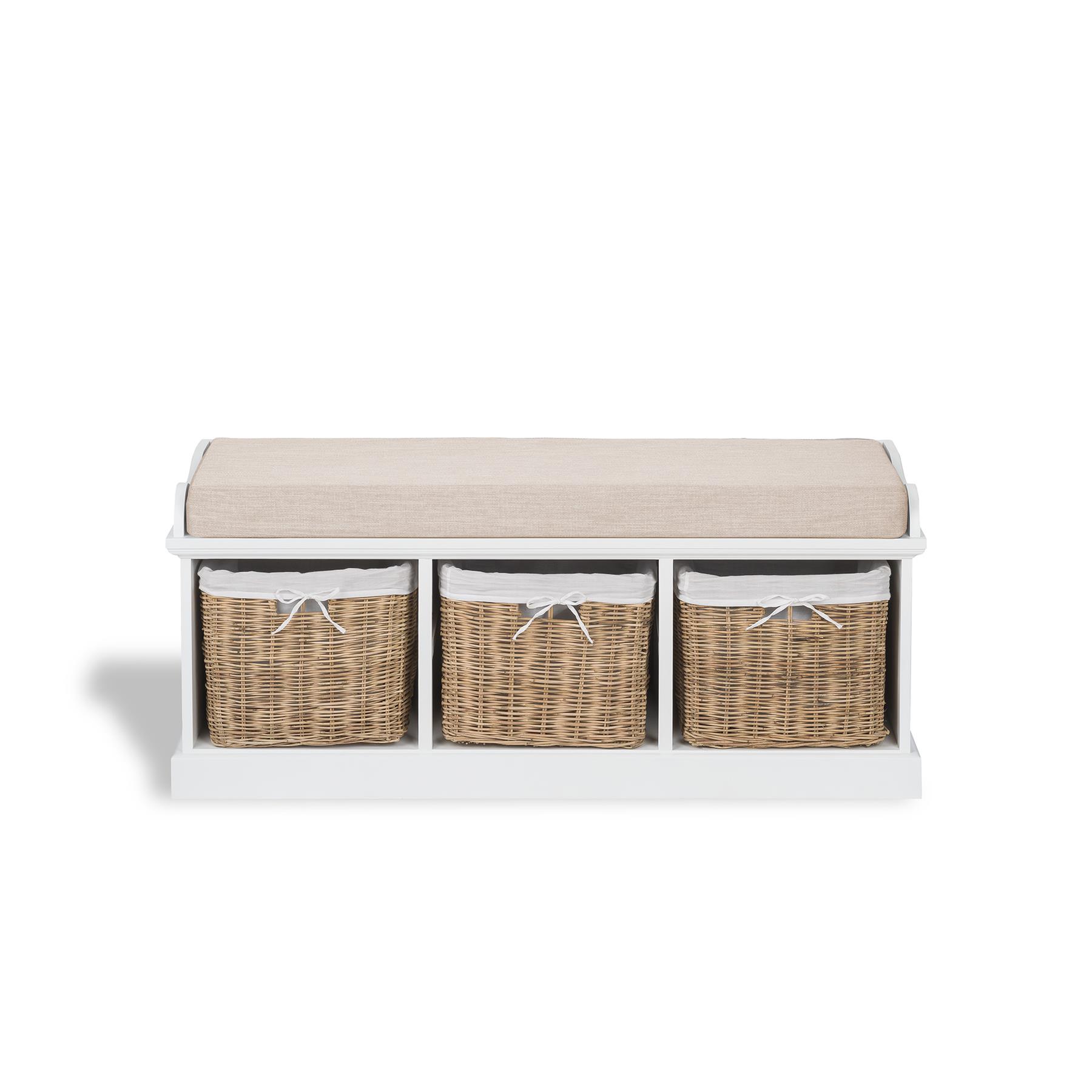 TETBURY White Bench with storage baskets.Hallway storage bench, 2 sizes QUALITY