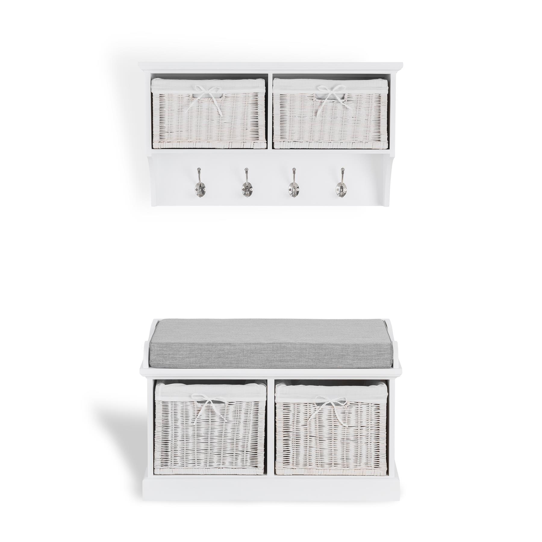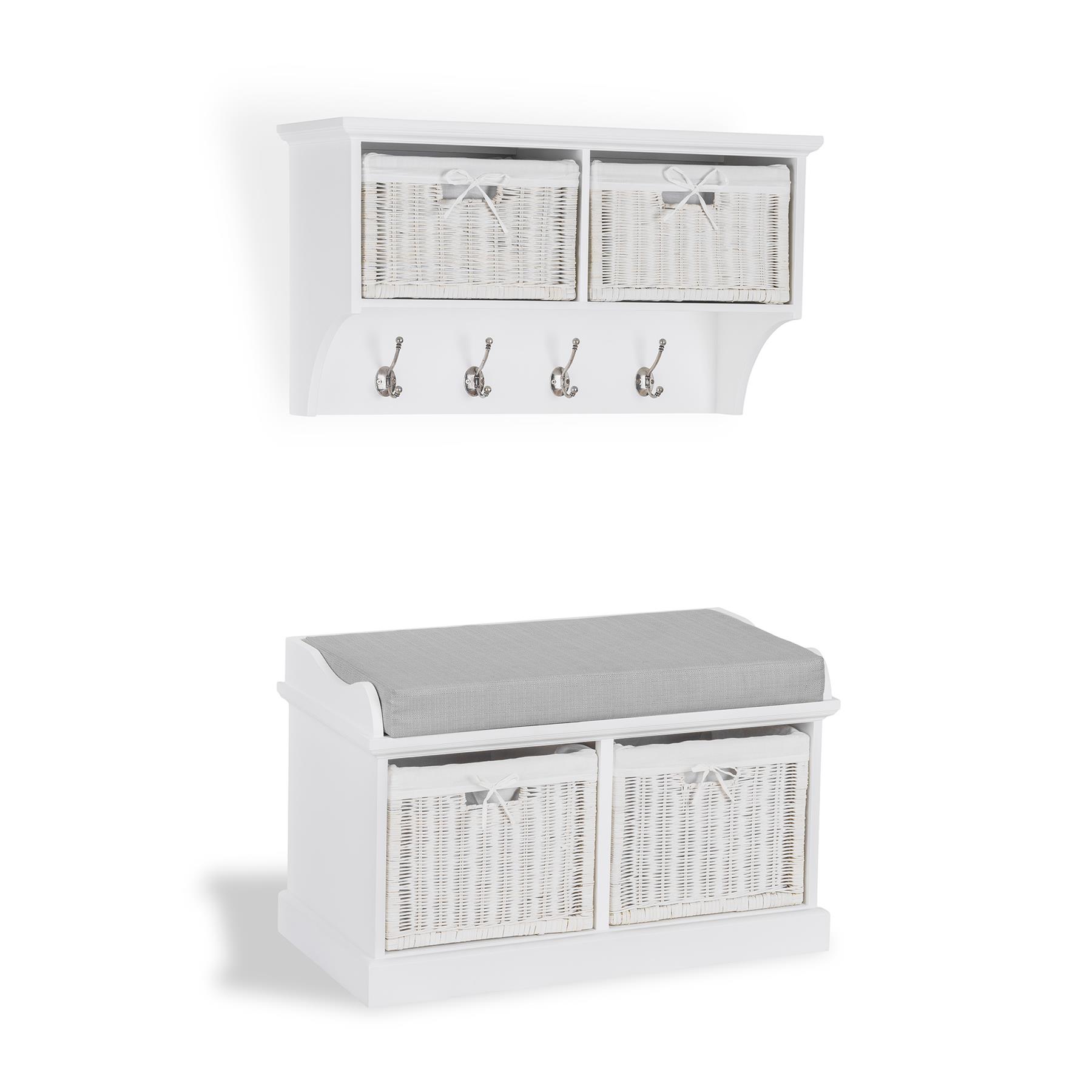 Tetbury Hallway Bench and Hanging Shelf Set Large Storage Baskets Wipe-Clean
