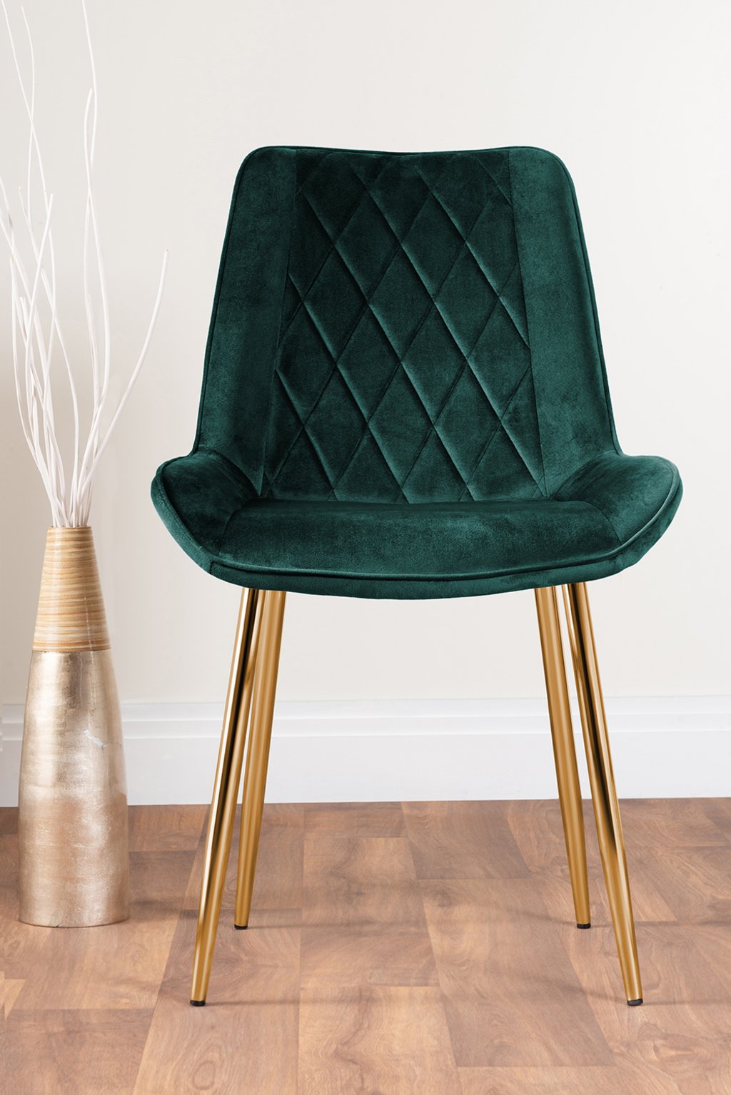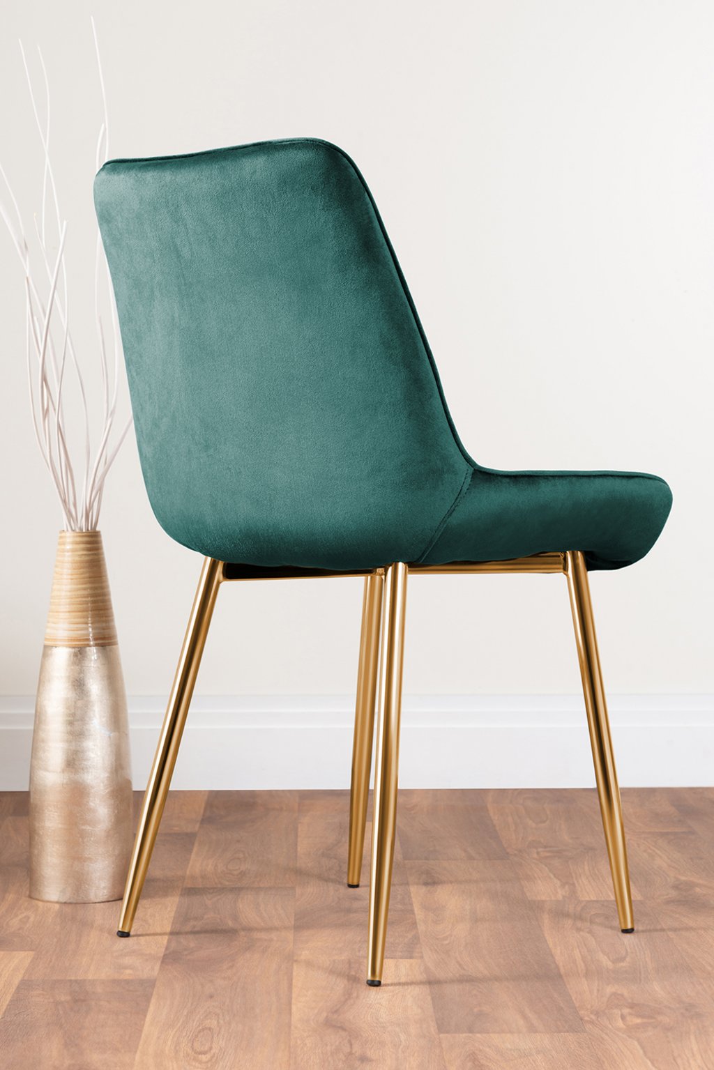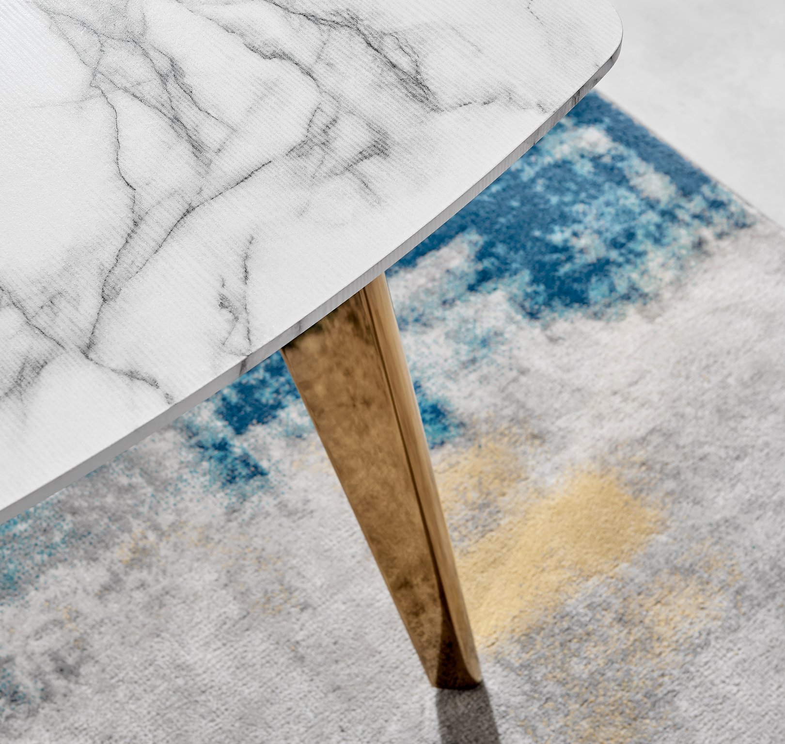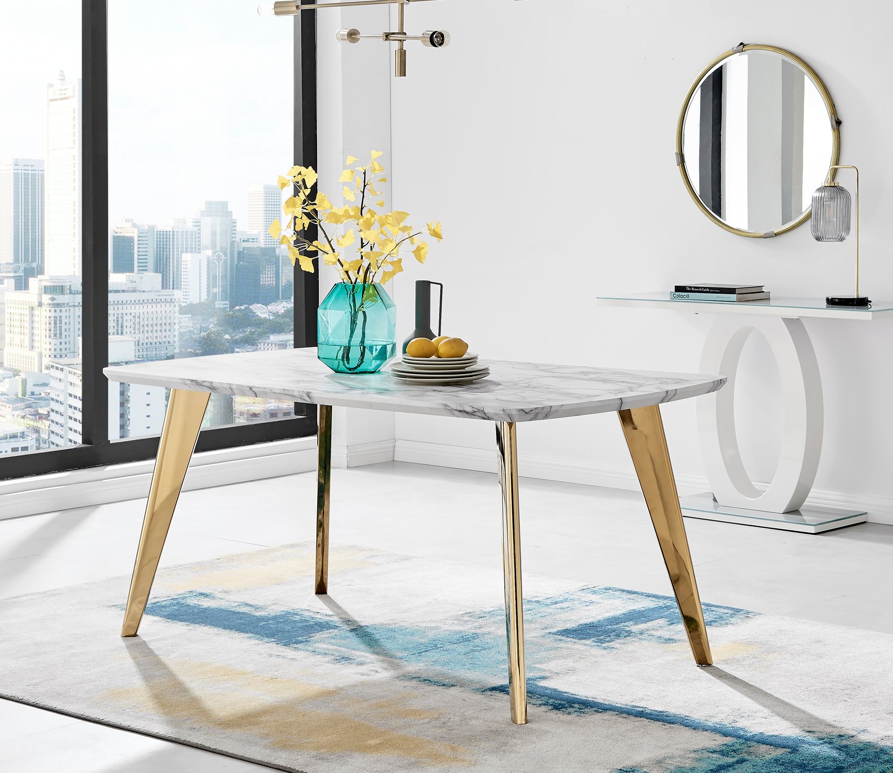 ANDRIA White Marble Effect & Gold Leg Dining Table & 6 Velvet Dining Chairs