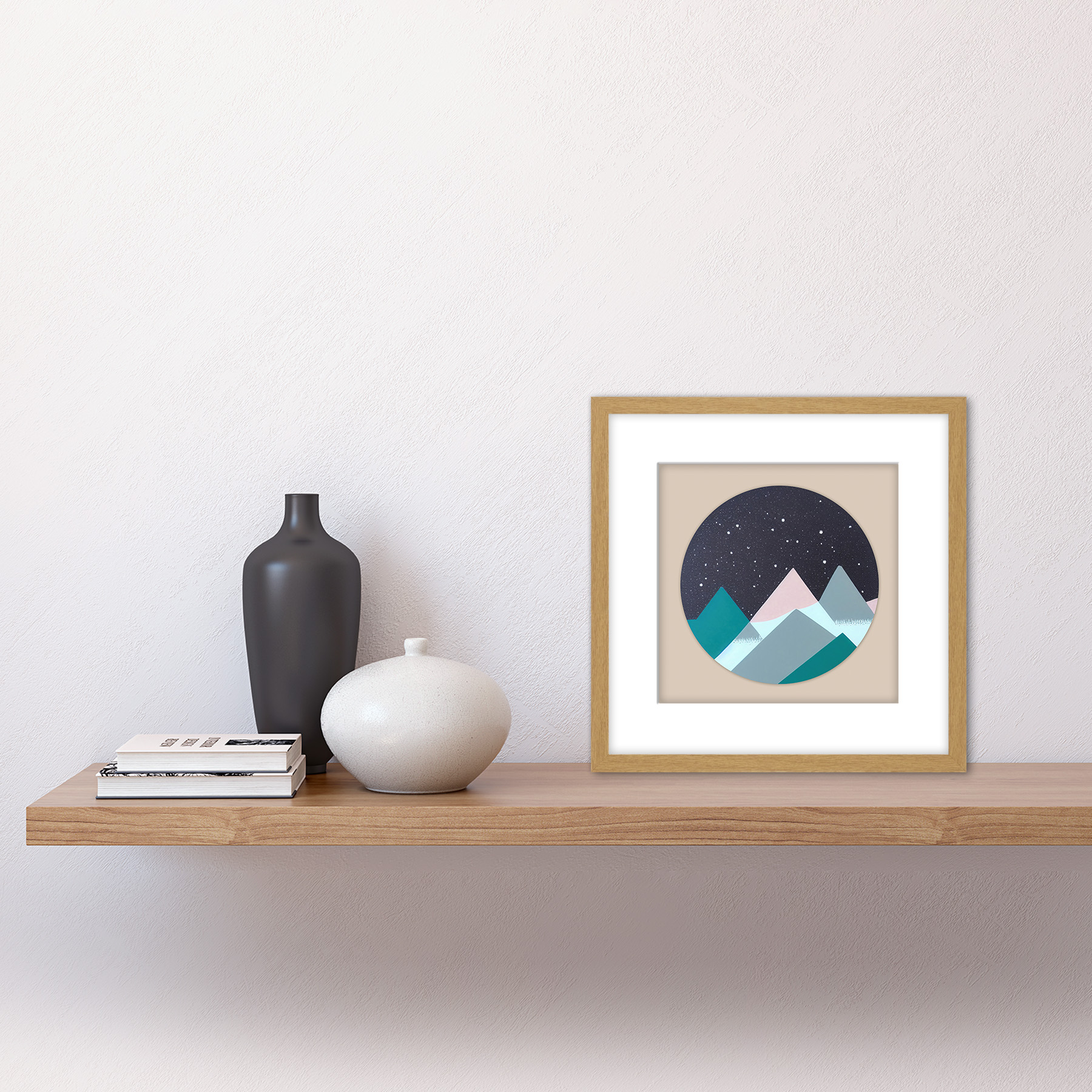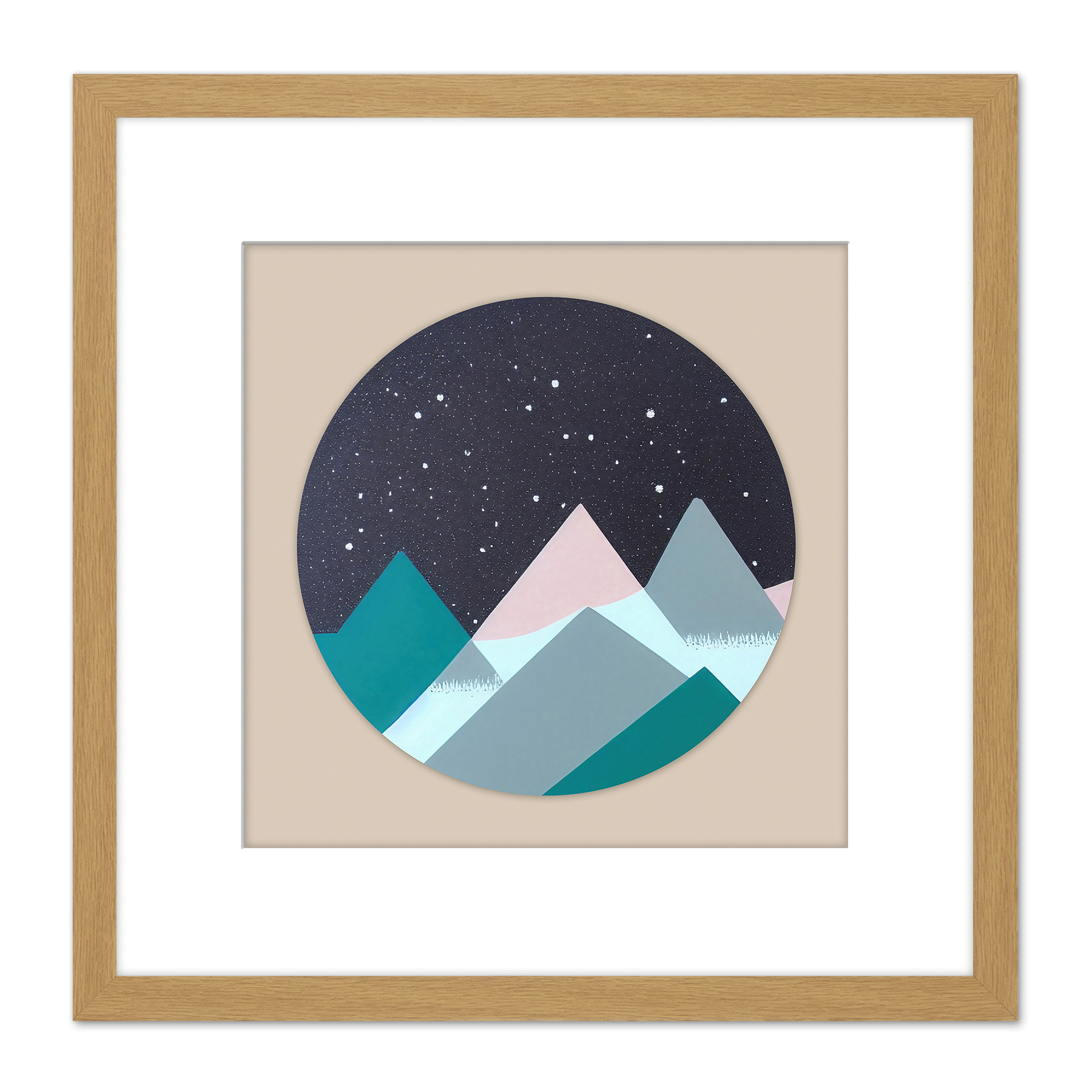 Incredible Mountains Snowy Stars Sky at Night Wall Art Print