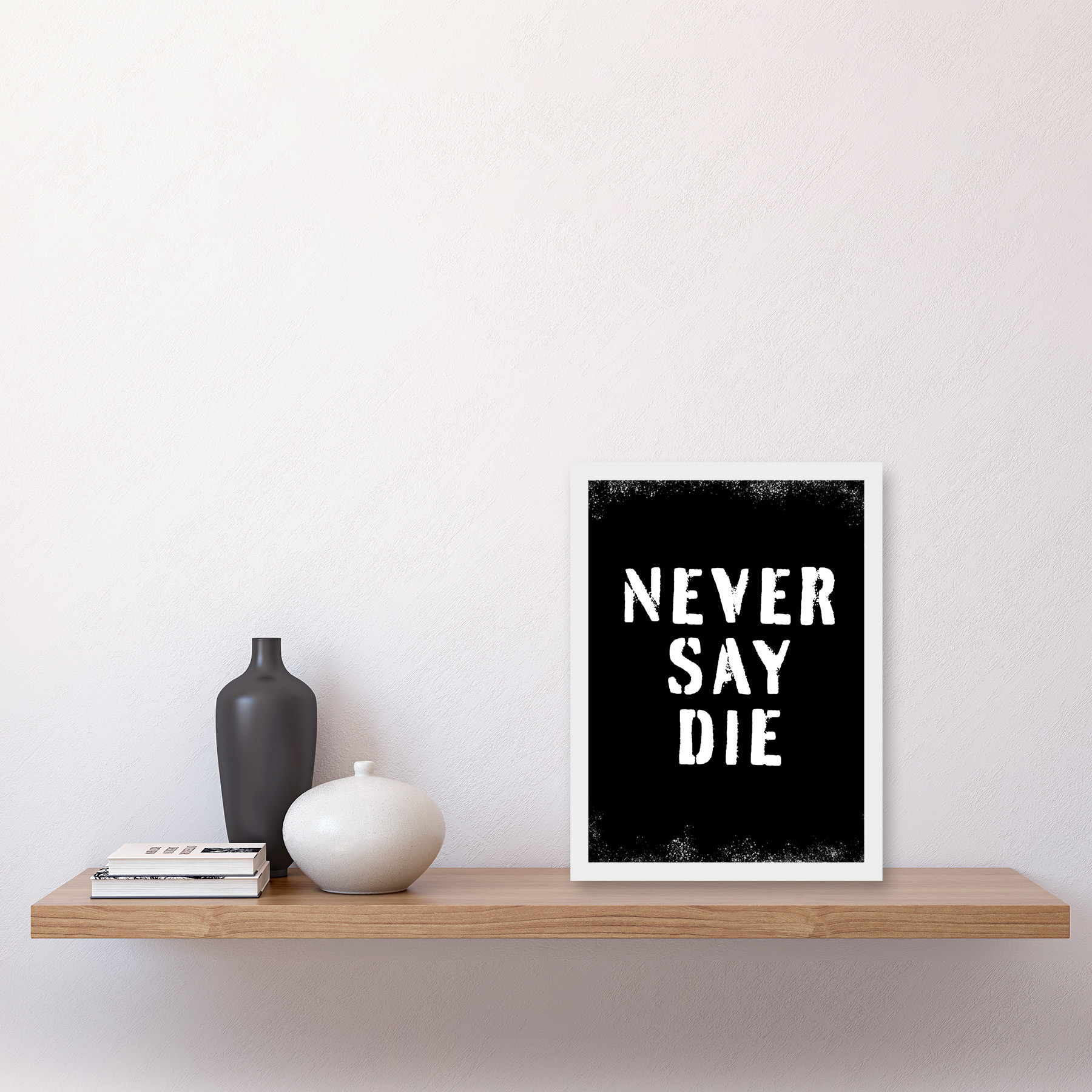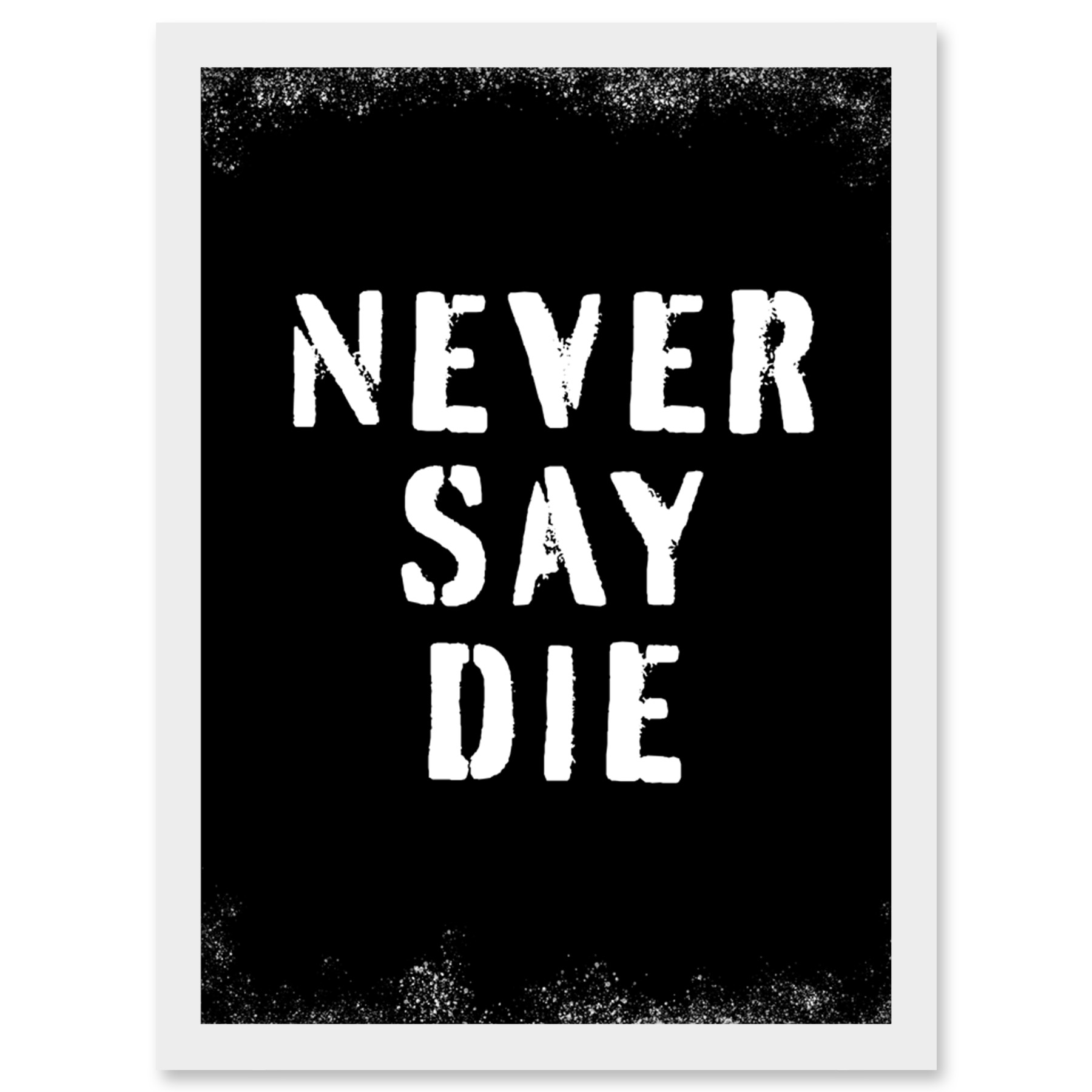 Artery8 Wall Art Print Gym Motivation Never Say Die Inspirational Positive Exercise Decor Workout Living Room Aesthetic Art Framed White W12" x H16"