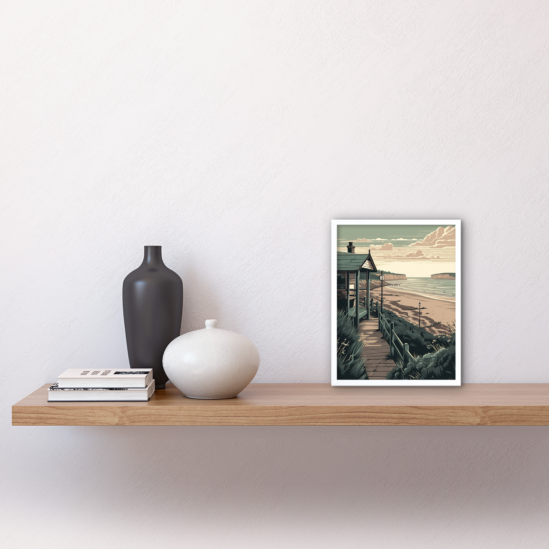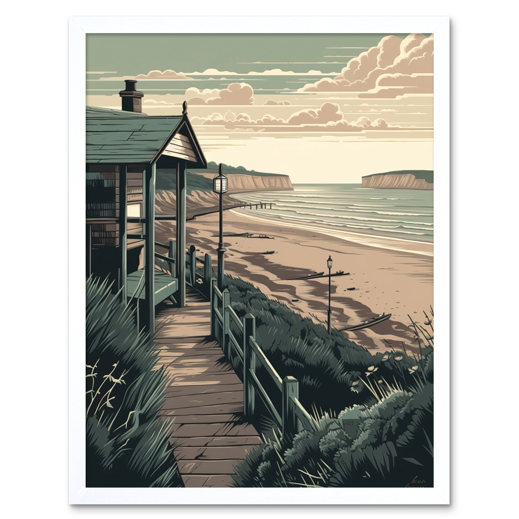Summer Beach House Coastal Landscape Illustration Framed Art Picture Print 9X7"