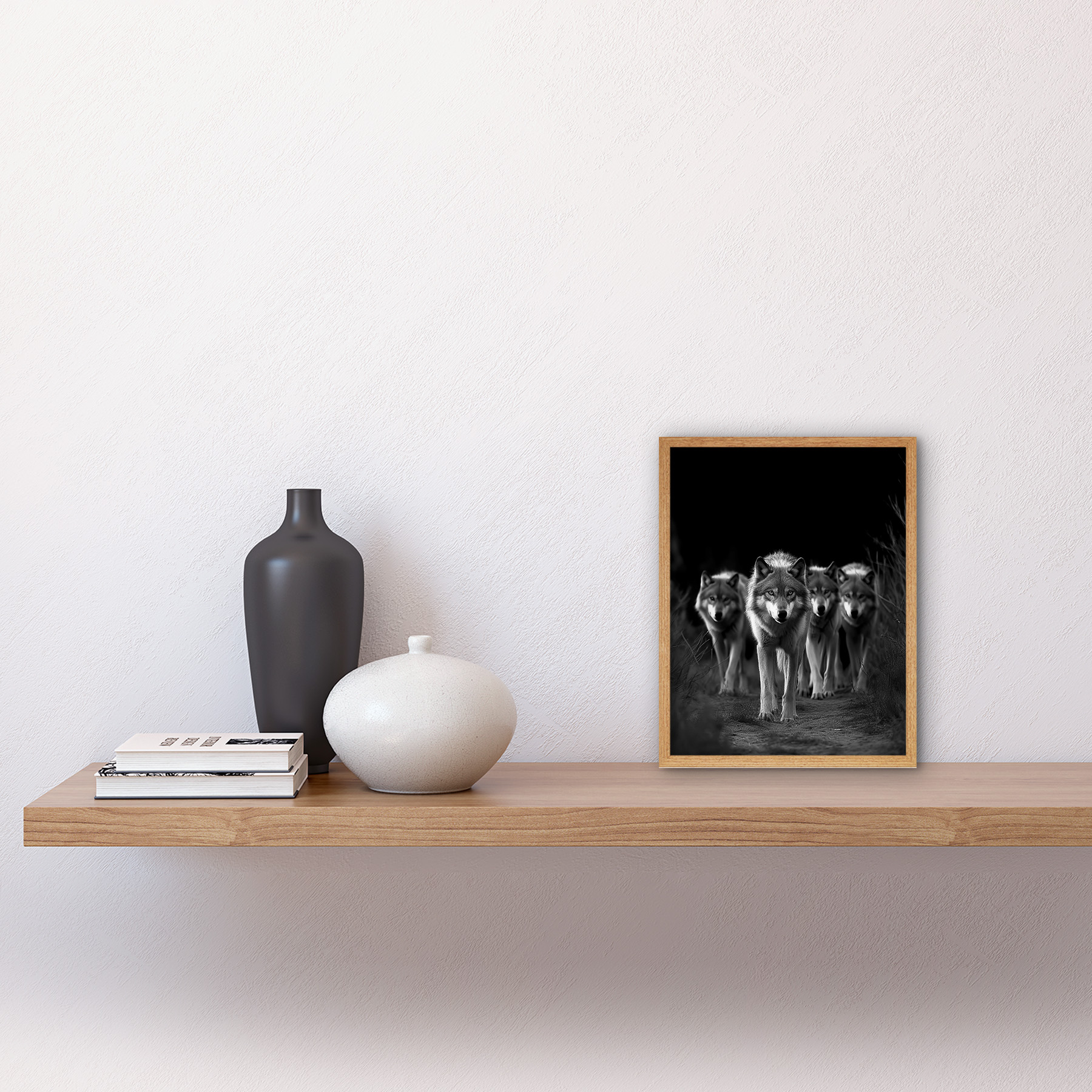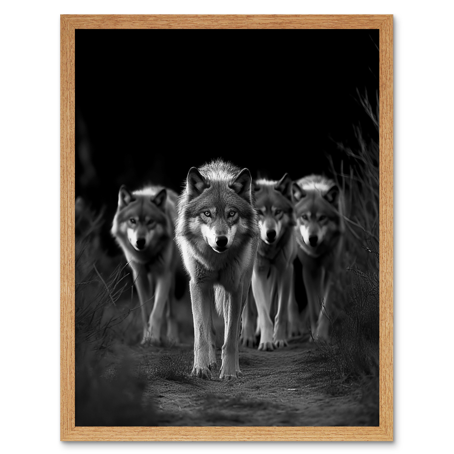 A Pack of Wolves Wild Animal Black and White Photo Framed Wall Art Print 9X7 In