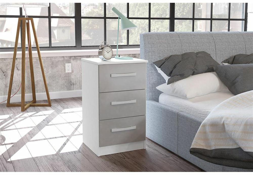 Lynx White & Grey Gloss Bedroom Furniture Wardrobe Chest Bedside by Birlea