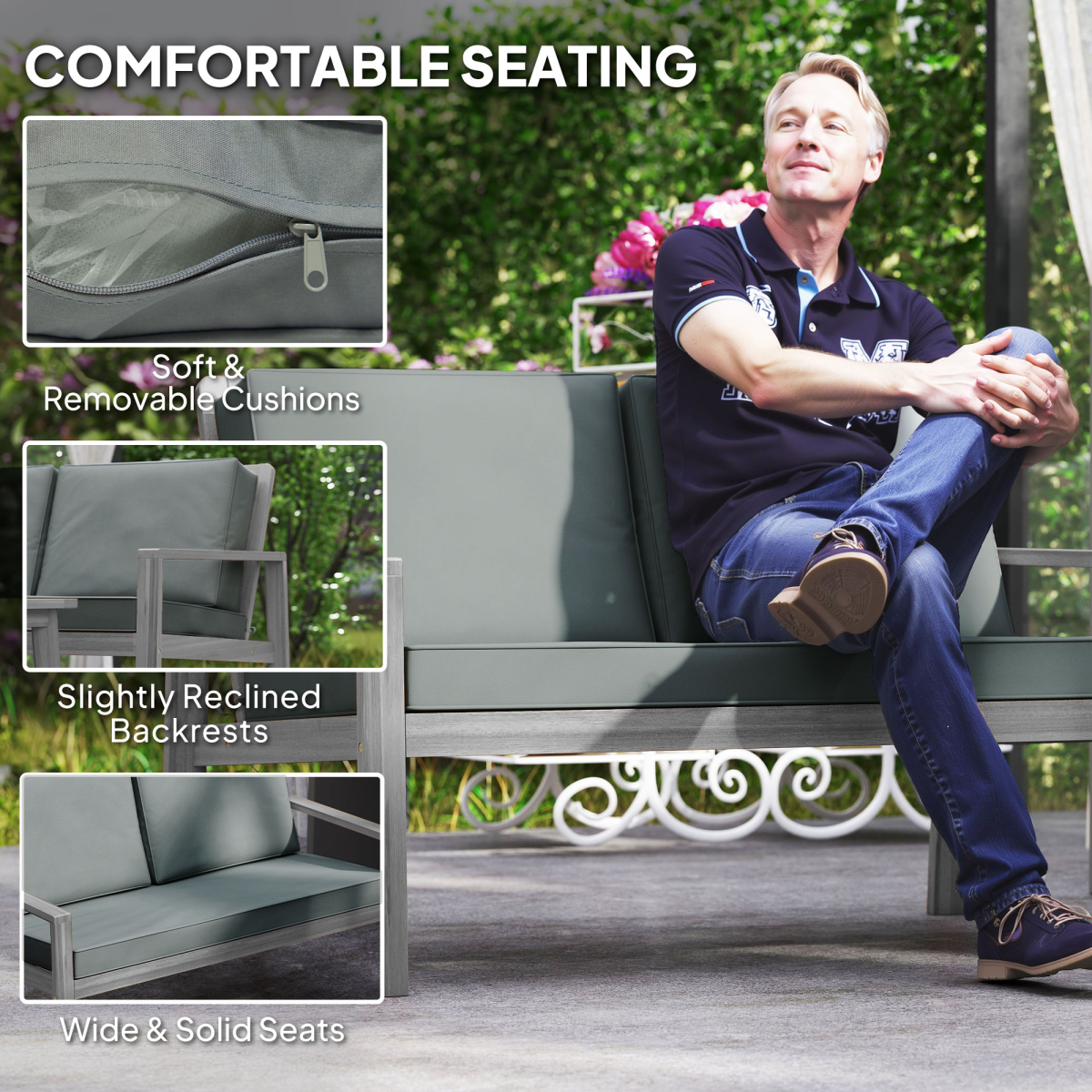 Outsunny 4 Pieces Wooden Garden Furniture Set with Cushions