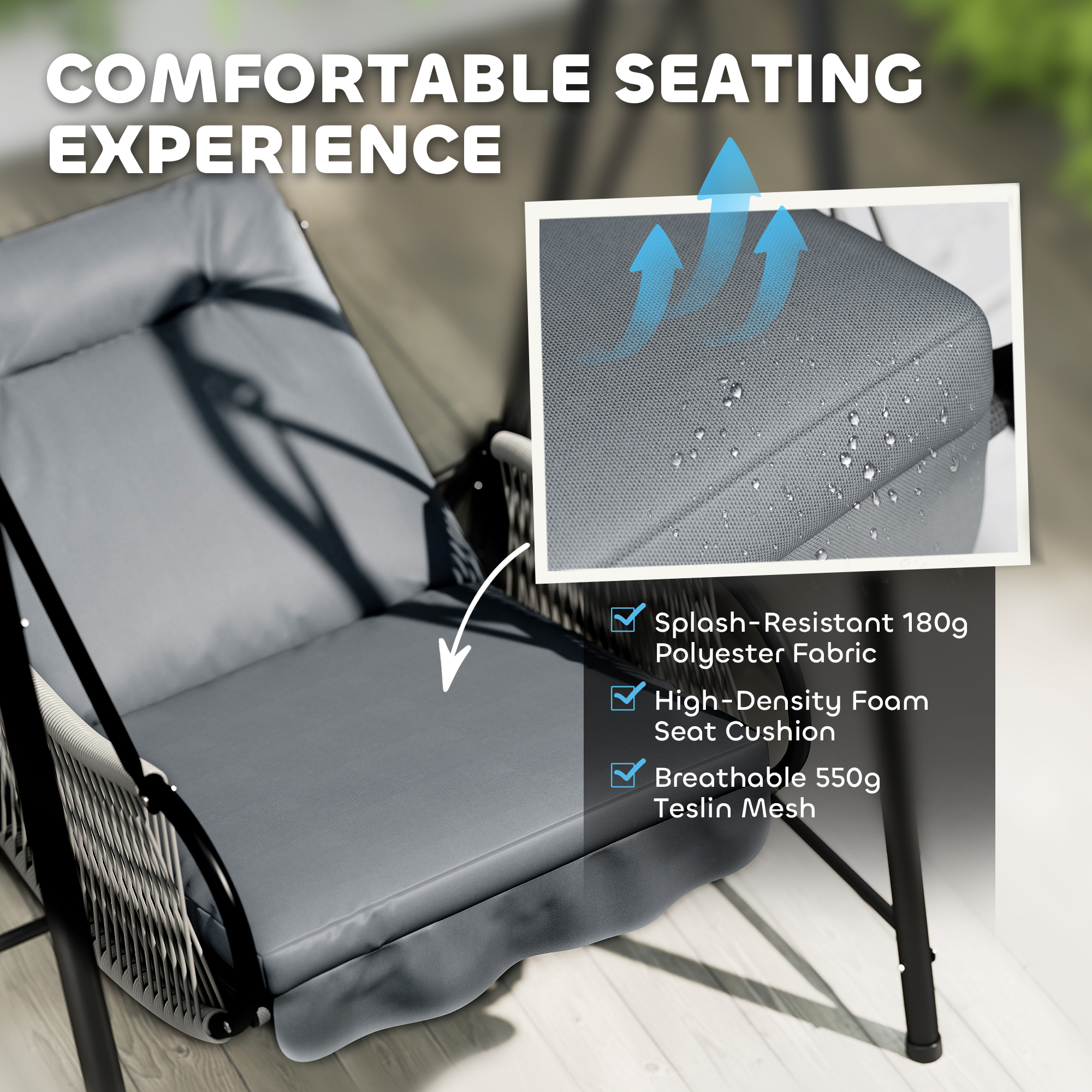 OUTSUNNY Rattan Swing Chair with Stand & Seat Cushion, Light Grey Light Grey